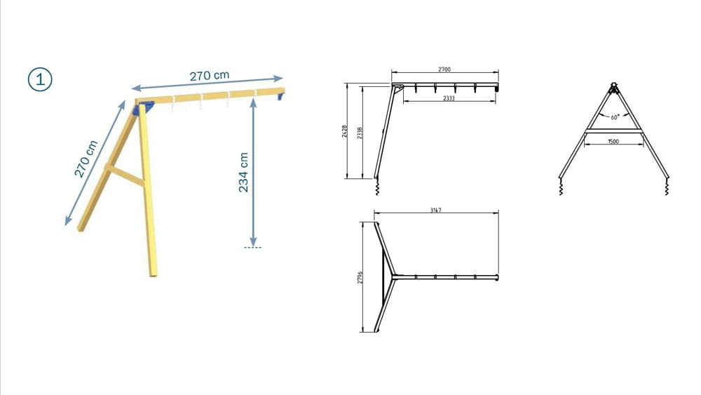 A Blue Rabbit @swing kerti játszótér modul L ajándék vágással alap ára minden esetben tartalmazza az összeszereléshez szükséges egységcsomagot- csavarokat, vasalatokat,  betonozható földhorgonyt (benne a részletes, ábrákkal illusztrált vágási és szerelési útmutatóval), a faanyagot (szálanyagban méretre vágás és előfúrás nélkül). Az egységcsomag hintaülőkét nem tartalmaz, azt külön kell hozzá választani.