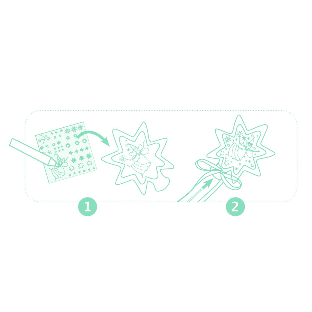 A kreatív készletben 4 varázspálca van, amik díszítésre várnak. A gyermek a mellékelt matricák és szalagok segítségével összeállítja és feldíszíti a varázspálcákat. Amikor elkészült, a varázspálcák tündökölnek a rajtuk lévő csillogó felületeknek köszönhetően!