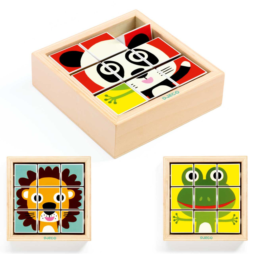 Gyönyörű, fakockából álló, állatos, forgatható kockakirakó.