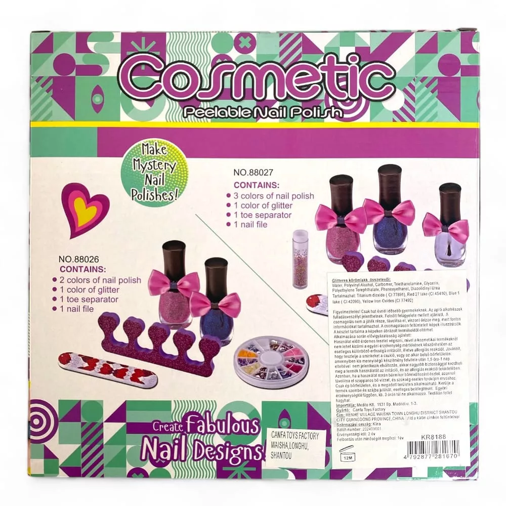 Gyerek körömdekor készlet: 2 db lakk, dekoráció, smink kiegészítő.