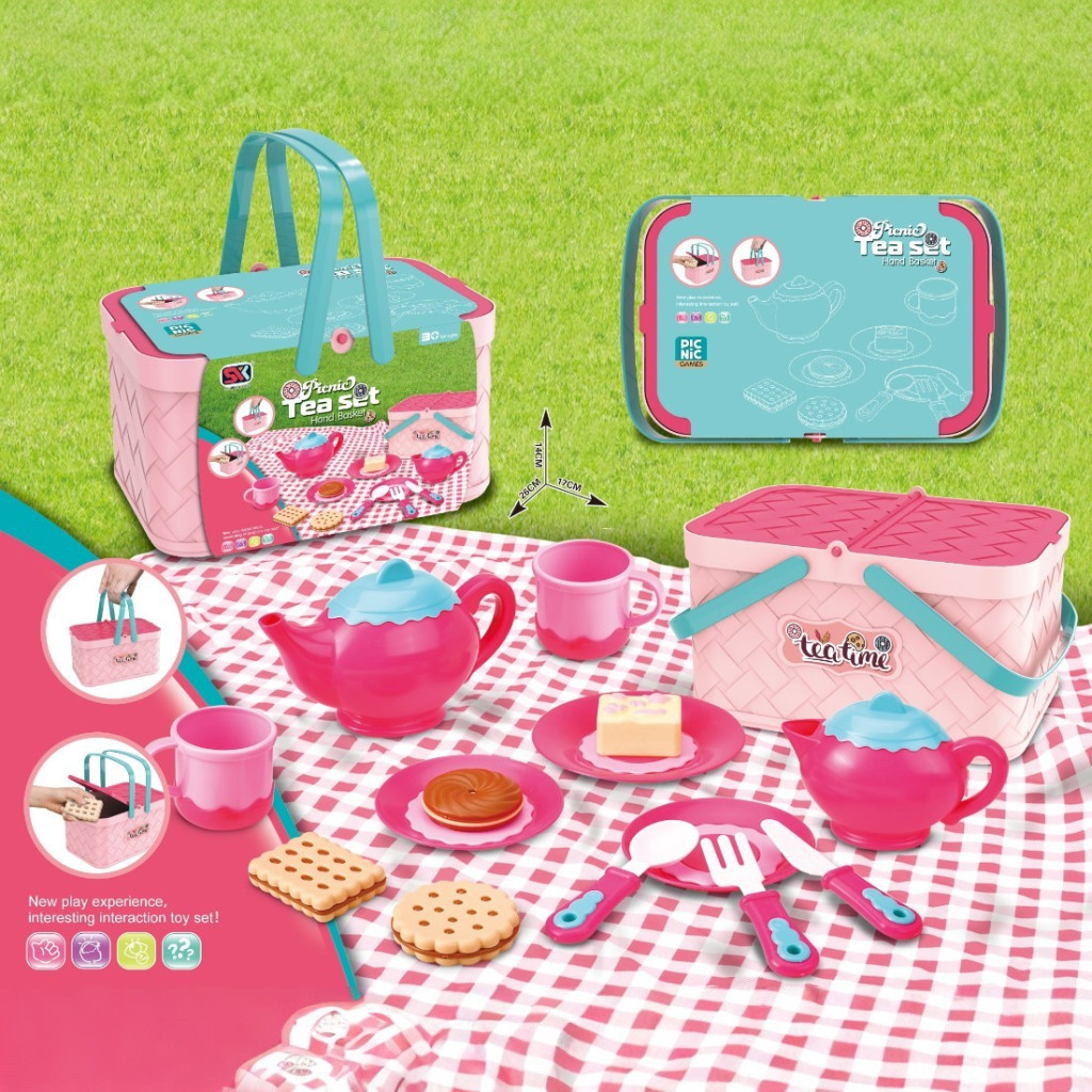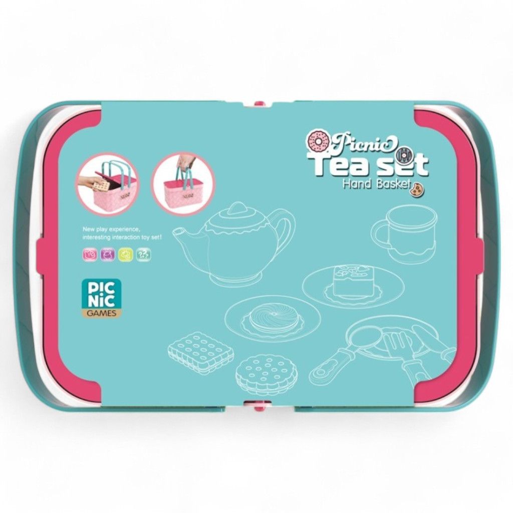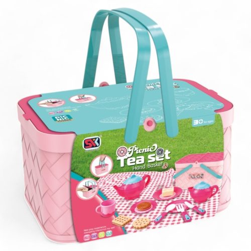 Teás és piknik kosárkészlet, 26x17 cm, gyerekeknek.