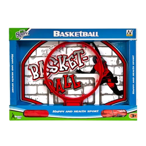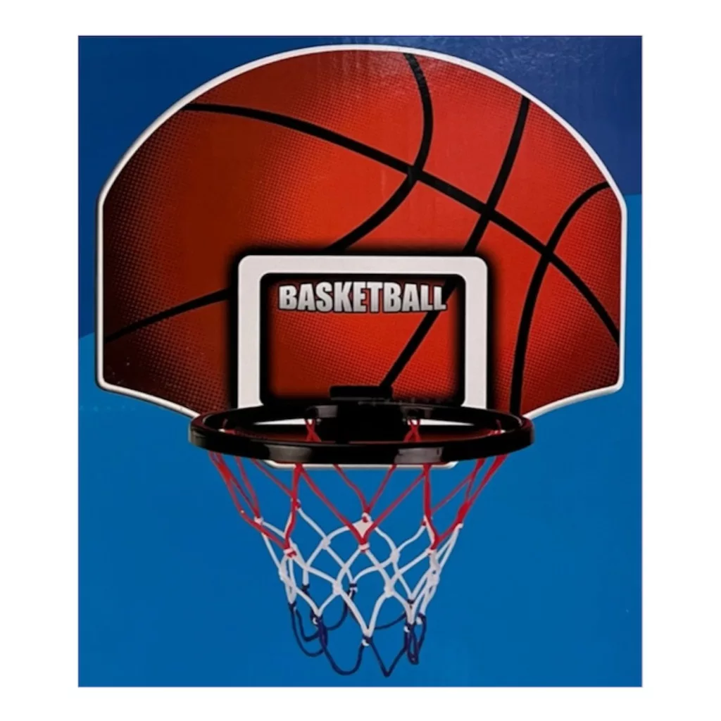 Kosárpalánk klt., labda + pumpa, 48x35 cm dob.