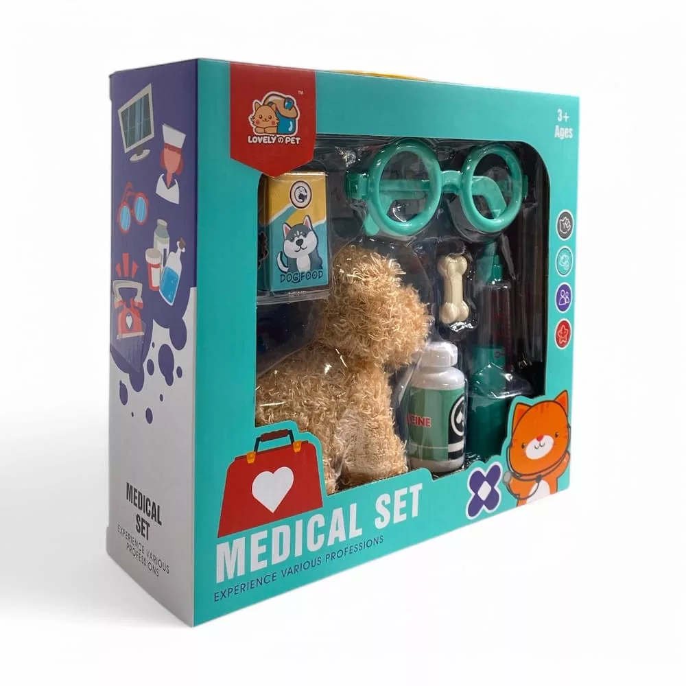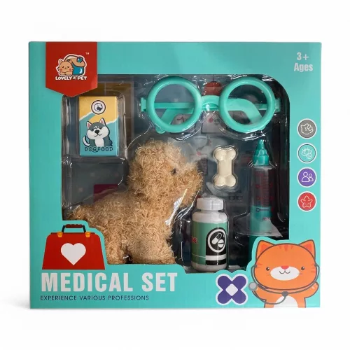 Ez a plüss kutya orvosi készlet tökéletes választás a gyerekek számára, akik szeretnék kipróbálni a kisállat gondozását. A készlet tartalmaz mindent, amire szükség lehet egy kisállat vizsgálatához és kezeléséhez, így a gyerekek könnyedén eljátszhatják az állatorvos szerepét. A plüss kutya mérete 25x23 cm, így ideális méretű a kicsik számára. Kiváló minőségű anyagokból készült, hogy biztosítsa a tartósságot és a biztonságot.