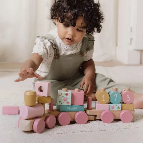 A Little Dutch vonat építőelemekkel - Fairy Garden egy elbűvölő játék, amely szórakoztató módon fejleszti a kicsik kézügyességét és kéz-szem koordinációját. A három kocsiból álló, fából készült vonatot a gyermekek szabadon építhetik a 17 különféle építőelemmel, amelyeket virágok, madarak és a számok (1, 2, 3) díszítenek. Minden egyes építőelem új lehetőséget kínál a kreatív játékra, miközben a gyermekek felfedezhetik a tündérkert varázslatos világát.