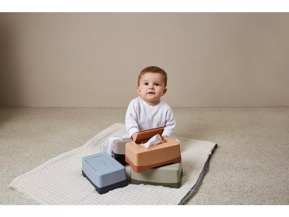 • A több színben kapható törlőkendő tároló része a LUMA Babycare által kínált fürdőszobai kellékek széles választékának.