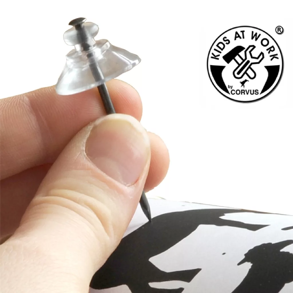 A szegekhez praktikus műanyagsapka található a csomagban, ami segít megvédeni az ujjaidat.
