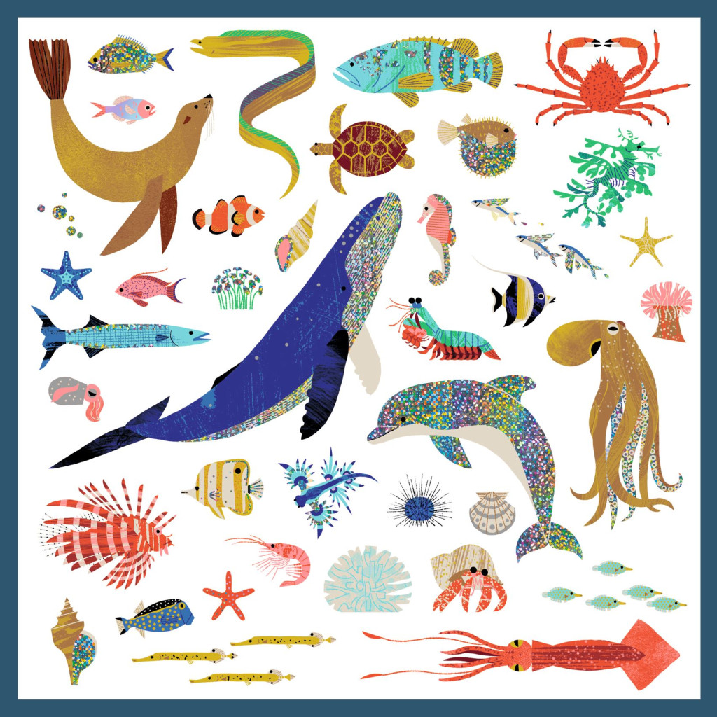 Egy tasak, 160 db  metálos matricával az óceán témájában. Kardhal, remeterák, naphal, csikóhal… A víz alatti fauna sok változatos és ragyogó állatát fedezheti fel ezekkel a matricákkal a gyermek. Szabadon ragaszthatja fel a sok matricát, hogy összeállítsa saját gyűjteményét egy-egy témában, vagy díszítse a matricákkal amit csak szeretne!