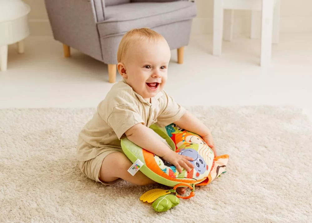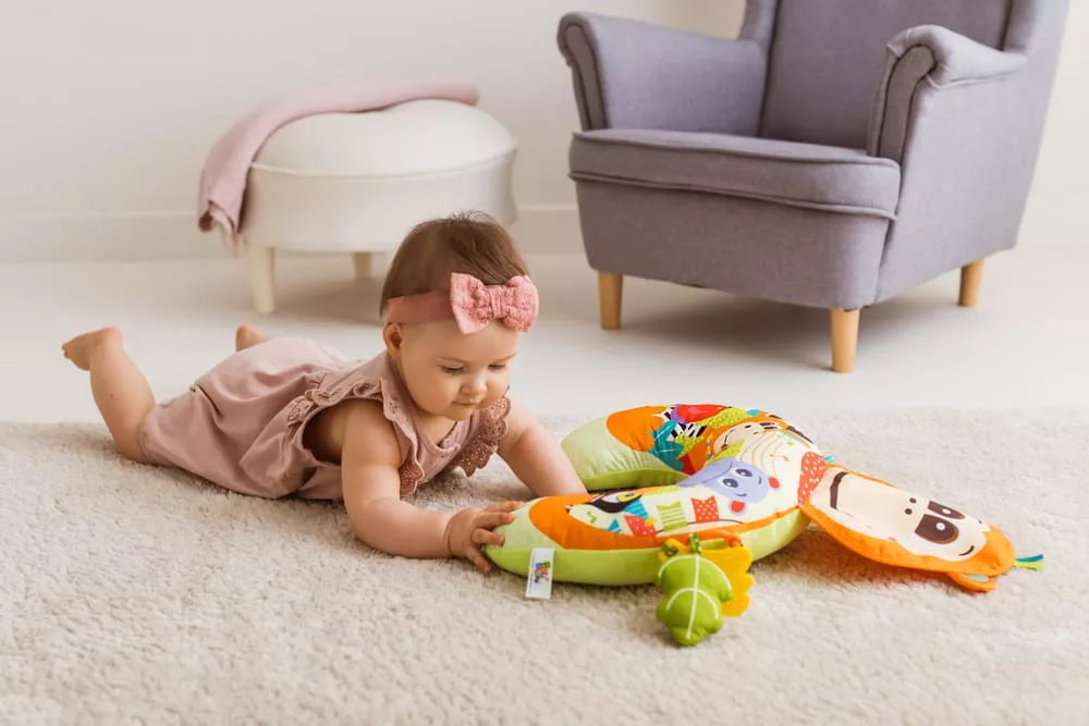 Puha, színes párna, amely támogatja a hason fekvést és játék közben stimulálja az érzékszervi fejlődést. A különböző textúrák, élénk színek és vidám állatok lekötik a baba figyelmét.