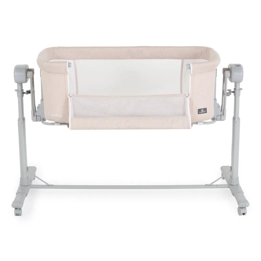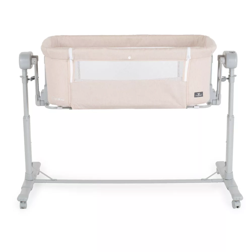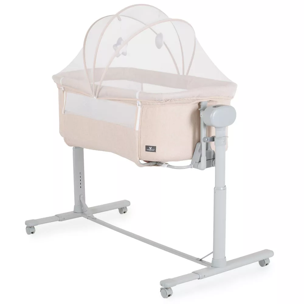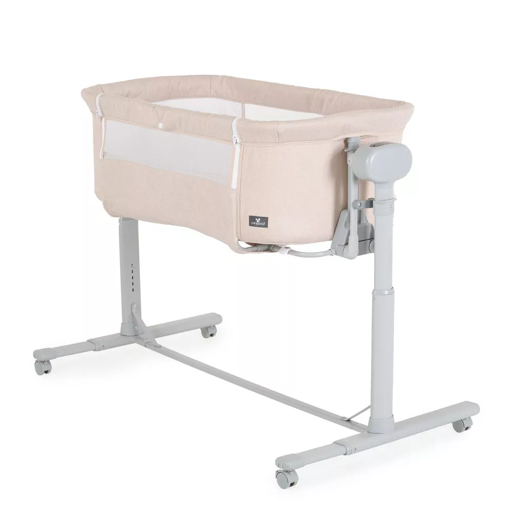 Alkalmas babáknak 0 hónapos kortól. A „szülői ágyhoz való rögzítés” funkció megkönnyíti az első hónapok éjszakáit, hogy a szülő mindig az újszülött mellett legyen. Alkalmas minden típusú ágyhoz, minimum 50 cm magassággal a padlótól és maximum 80 cm. Magassága 7 pozíció egyikébe állítható, a kiságy pedig 30°-os szögben dönthető, hogy segítse babája emésztését, javítsa a légzést és kezelje a refluxot. 4 kerék van ütközőkkel a könnyű mozgatáshoz. A szuperkényelmes matrac és a puha oldalak megfelelő helyzetben tartják babáját, és biztonságban tartják. Normál kiságyként használható. Van szúnyogháló és egy kosár a kiegészítőknek.