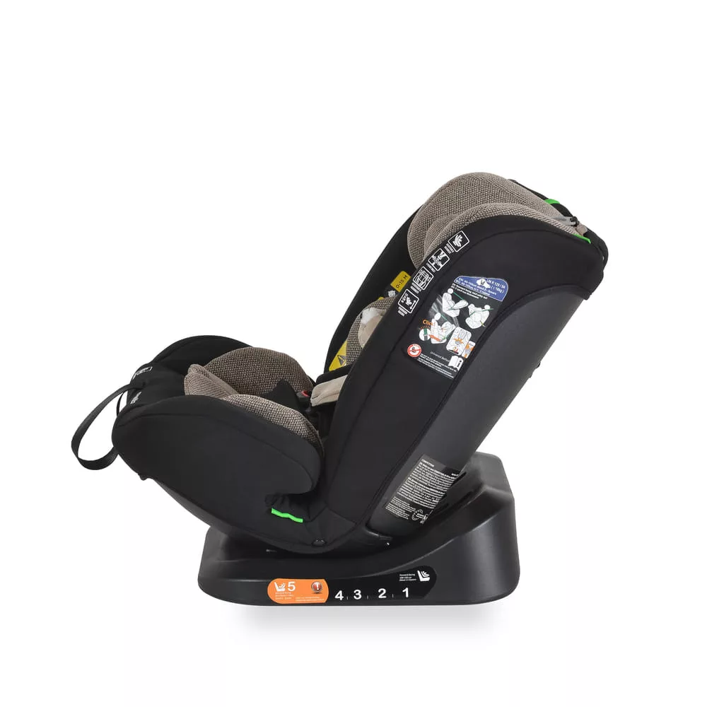 • 40 és 105 cm között – menetiránynak háttal történő beszerelés, az ülés 5 pontos biztonsági övével és az autó 3 pontos biztonsági övével
