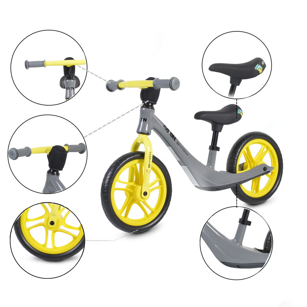 Go On futóbicikli, olyan kerékpár, ahol az egyensúlyozást tanulja a kisgyermek. A magnéziumötvözet vázzal készült, 3-6 éves gyermekek számára, maximum 30 kg súlyig.
