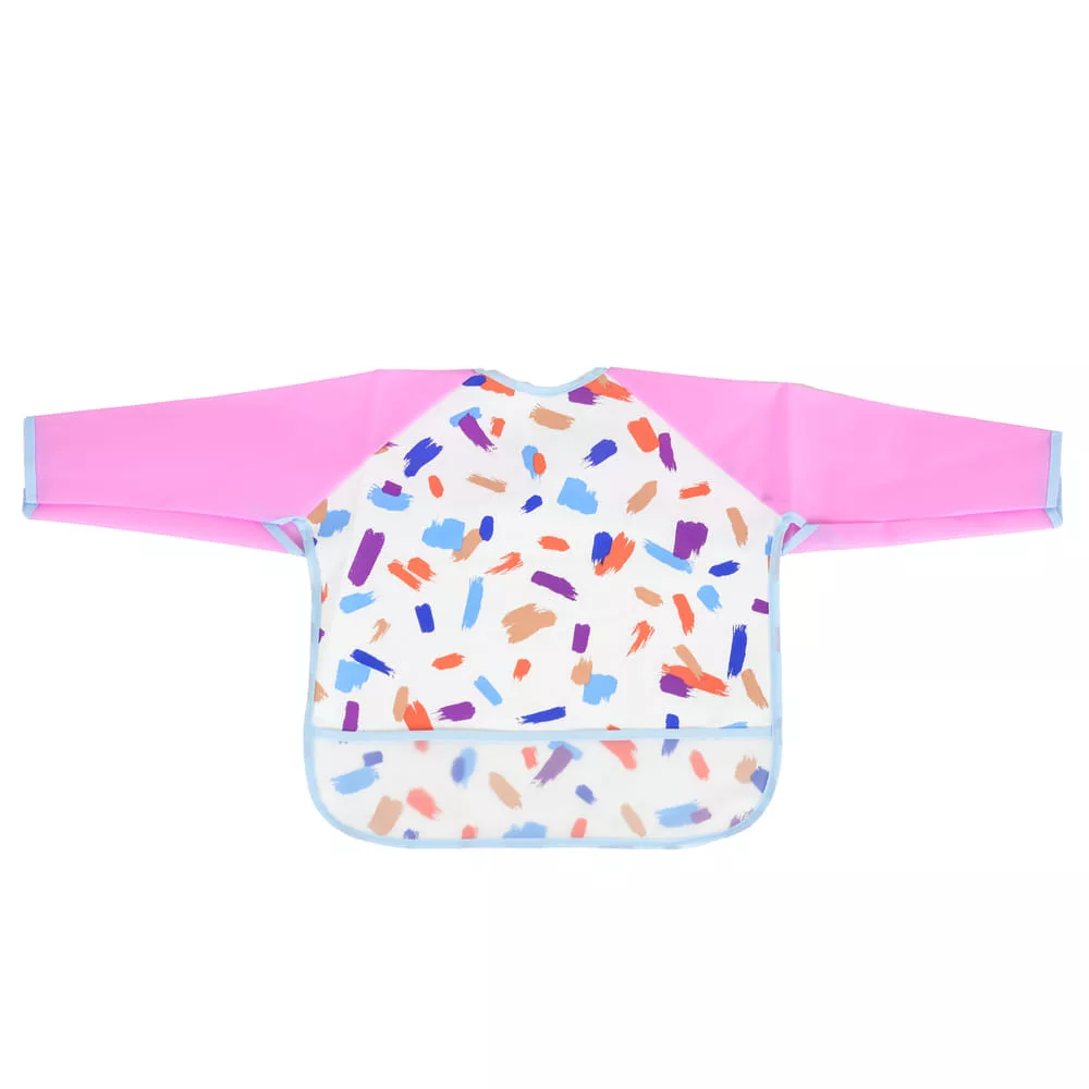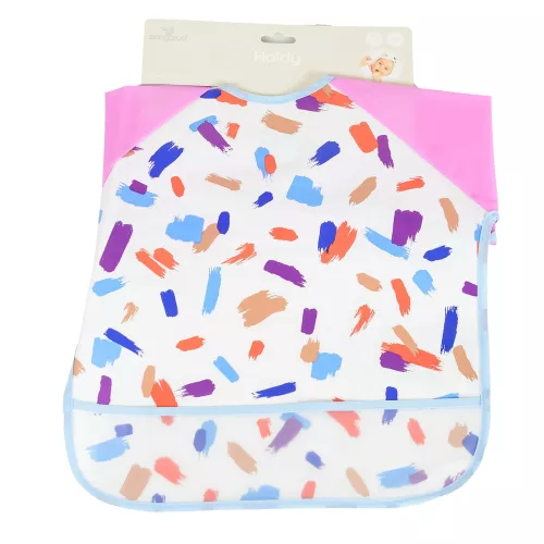 A hosszú ujjú és „pelikán” dizájnú előke úgy lett kialakítva, hogy megvédje a baba ruháit etetés közben.