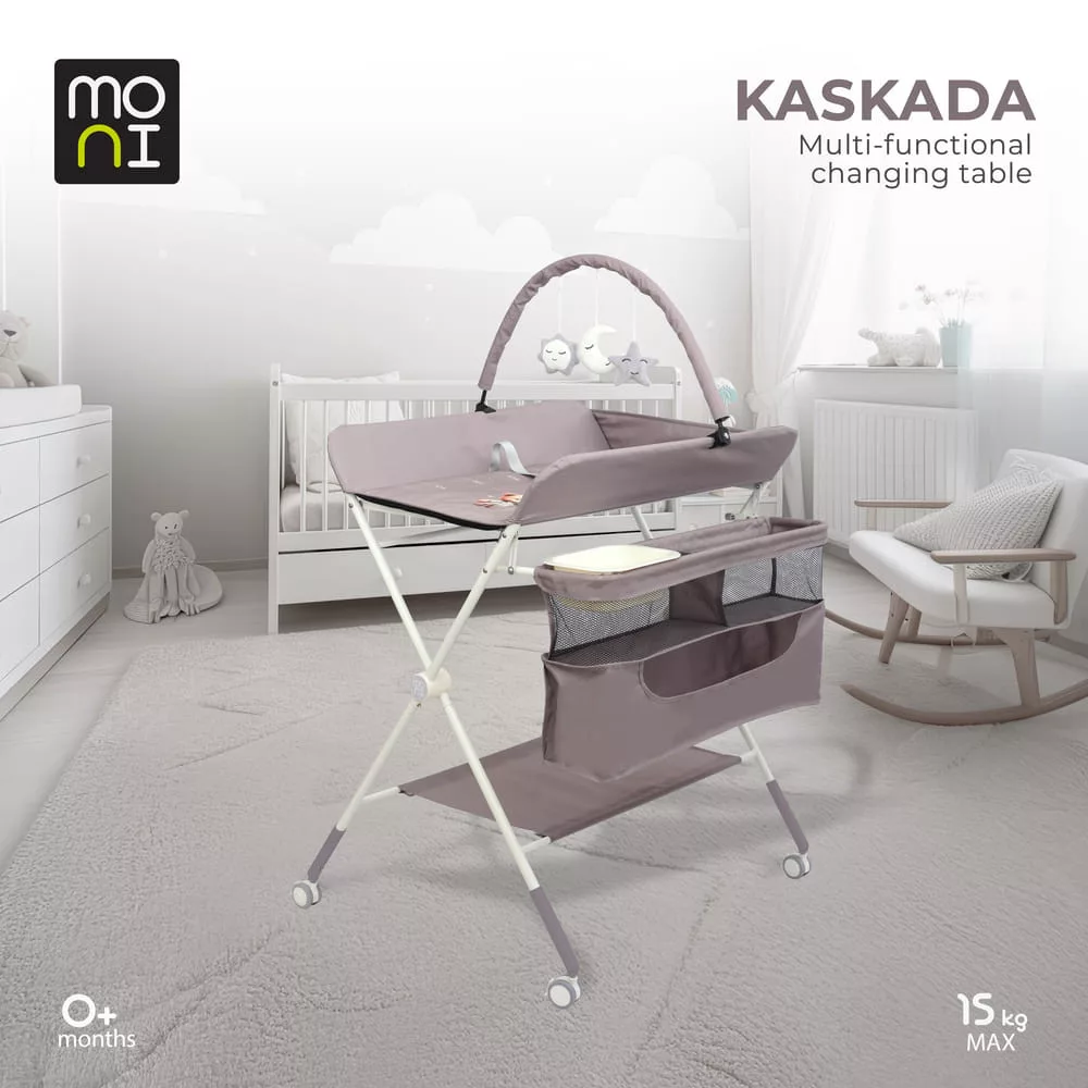 A Kaskada, Moni multifunkcionális pelenkázó asztal ötvözi a funkcionalitást, a kényelmet és a stílust. Összecsukható szerkezete helyet takarít meg, és számos kényelmi funkciója nélkülözhetetlenné teszi a mindennapi babaápolás során – az első naptól körülbelül 12 hónapos korig, és a maximálisan megengedett súly 15 kg.