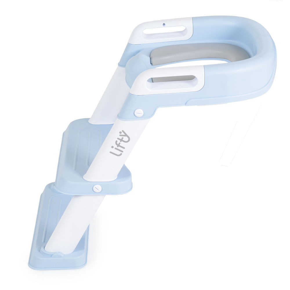 Адапторът със стълба Lifty на Moni позволява на малките деца да използват стандартната тоалетна самостоятелно, като им осигурява удобство, увереност и подпомага изграждането на самостоятелни хигиенни навици.