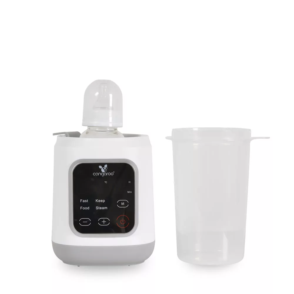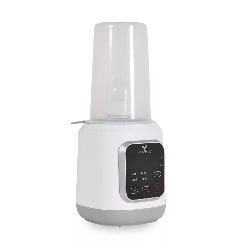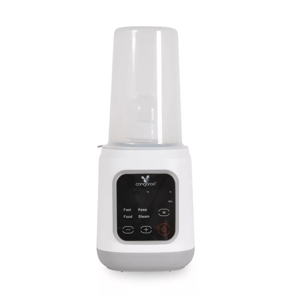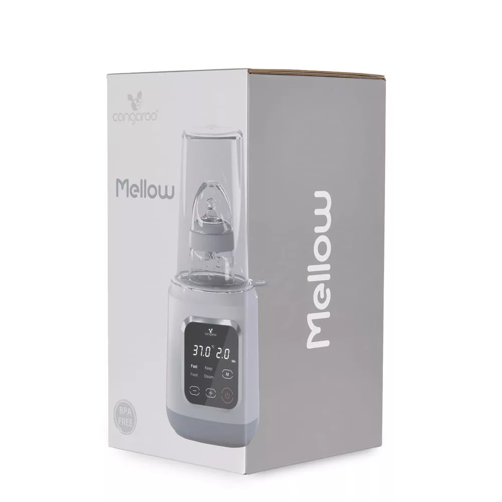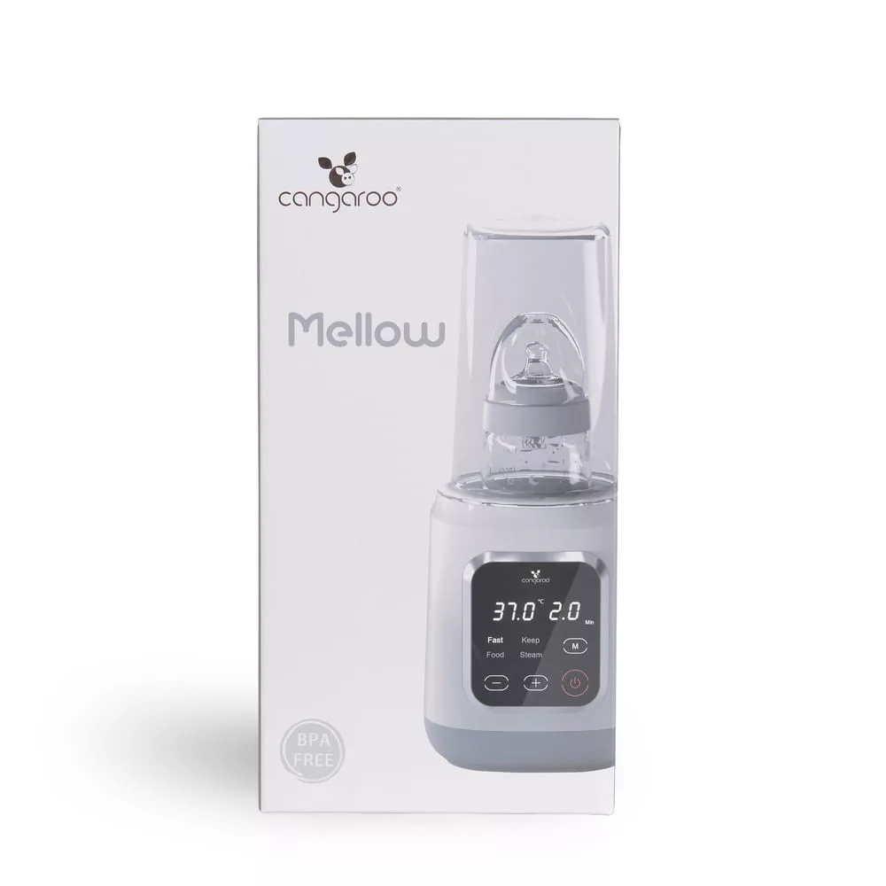 A Mellow, Cangaroo melegítőt úgy tervezték, hogy megkönnyítse a szülők mindennapjait, mivel gyors és biztonságos tej- és ételmelegítést, sterilizálást és hőmérséklet-fenntartást biztosít - mindezt egy kompakt és könnyen kezelhető készülékben. Főbb jellemzők: - 4 funkció 1 készülékben: tejmelegítés, ételmelegítés, sterilizálás, hőmérséklet-fenntartás. - Modern digitális vezérlőpanel érintőképernyővel - Lehetőség a melegítési és sterilizálási idők kézi beállítására - Mellékelt kosár befőttesüvegek és cumisüvegek számára - Automatikus kikapcsolás a sterilizálás után - Kompakt méret és könnyű használat - Teljesítmény: 400W Működési módok: - Anyatej és tápszer melegítése: gyors és egyenletes melegítés a tápértékek megőrzésével. Minden palacktípushoz alkalmas. - Babaételek melegítése: kompatibilis az üvegekkel és az ételtartályokkal. A készülékhez tartozik egy kosár a könnyű elhelyezéshez. - Hőmérséklet-fenntartó funkció: a tej vagy az étel kívánt hőmérsékletének fenntartása az etetés idejéig. Sterilizálás: - Alkalmas cumisüvegek, cumik, és egyéb apró kiegészítők sterilizálására. - Sterilizálási idő: körülbelül 10 perc (5 és 15 perc között állítható). - Automatikus kikapcsolás a folyamat befejezése után