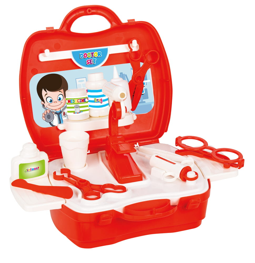 Szerepjáték készlet, amely 25 különböző részt tartalmaz, egy bőröndben csomagolva. 3 éves és idősebb gyerekeknek alkalmas.