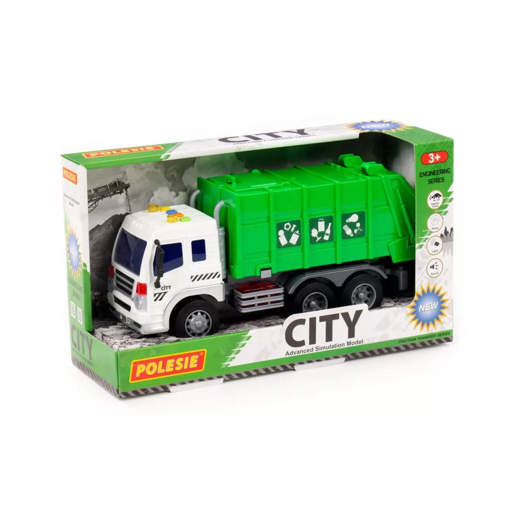 Moni Polesie műanyag szelektív kukásautó fényekkel, hangokkal sötétzöld
