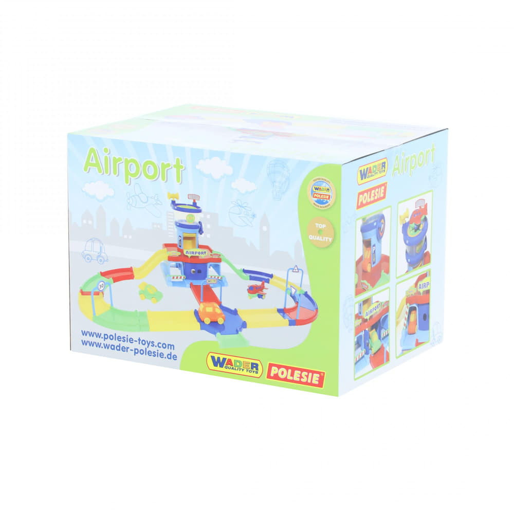 Ez a gyerekjáték izgalmas utazásokra viszi a kis pilótákat és repülősöket anélkül, hogy elhagynák a szobát. A készlet színesen kidolgozott, biztonságos műanyagból készült elemeket tartalmaz – irányítótorony lifttel, két autó, repülőgép és közlekedési táblák. A pálya különböző elrendezési lehetőségei fejlesztik a képzeletet és a kreatív gondolkodást.
