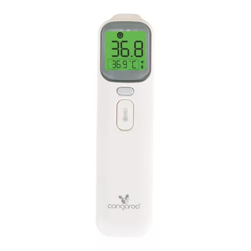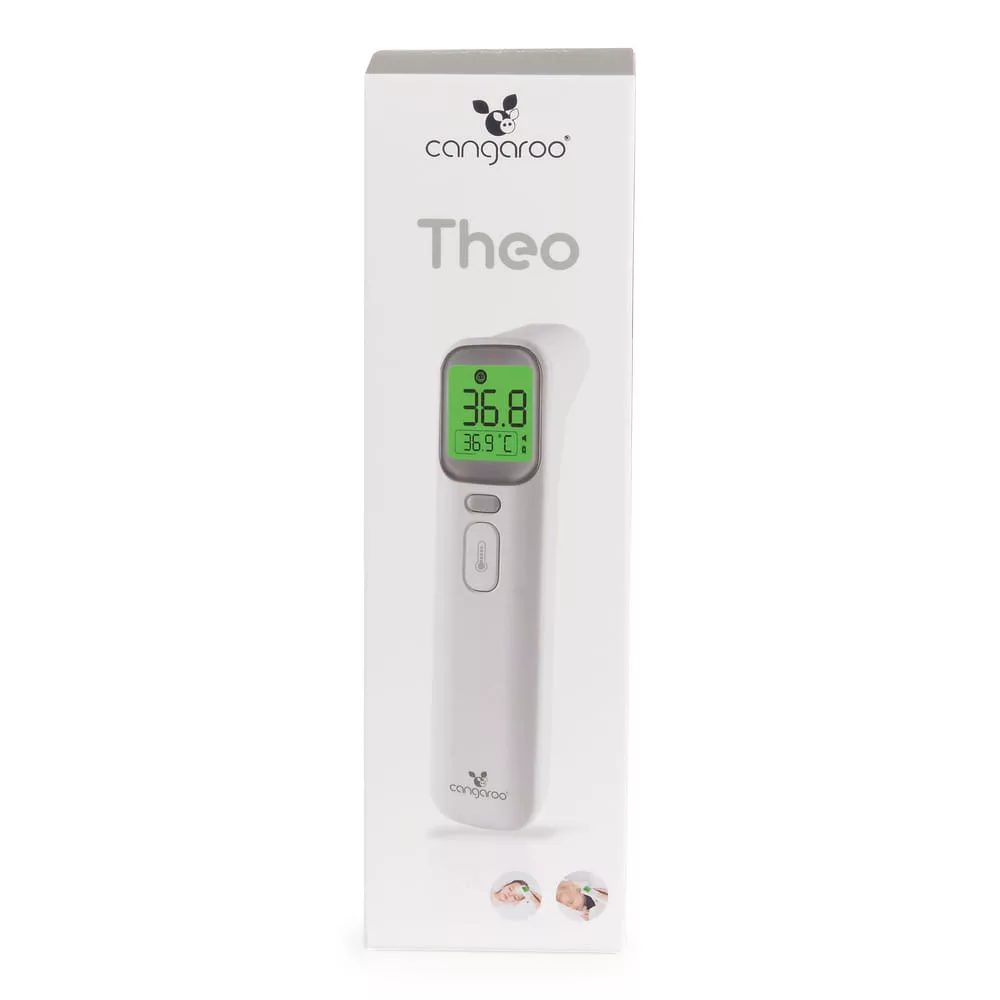 A Cangaroo érintésmentes infravörös hőmérője, a Theo gyors, pontos és biztonságos hőmérsékletmérést biztosít a babája vagy tárgyak számára. Ezzel mérheti a homlok, a fülcsatorna, valamint a szobák vagy tárgyak, például a cumisüvegben lévő tej hőmérsékletét.