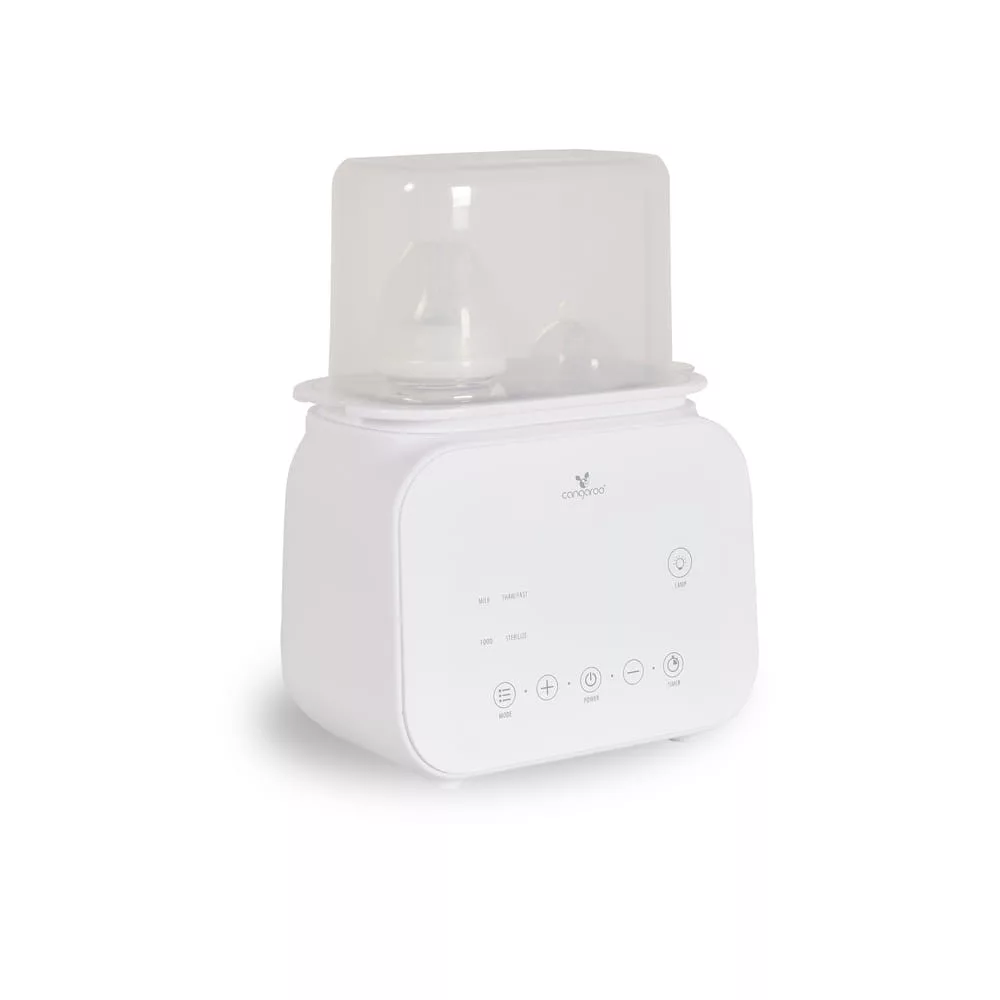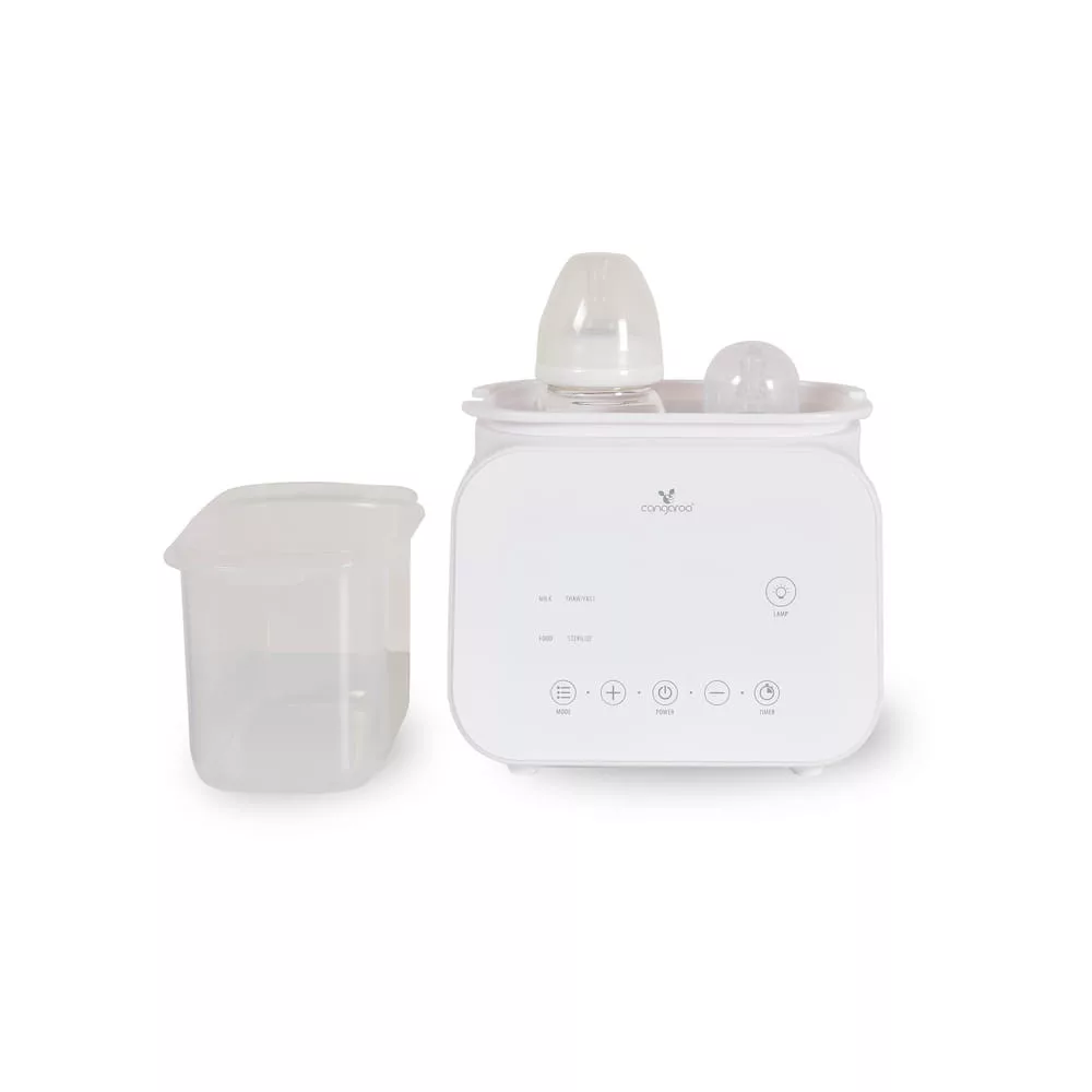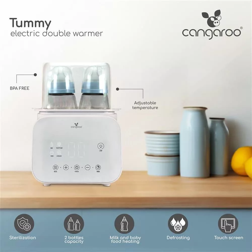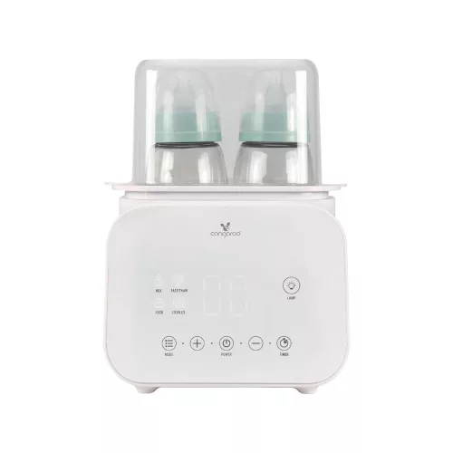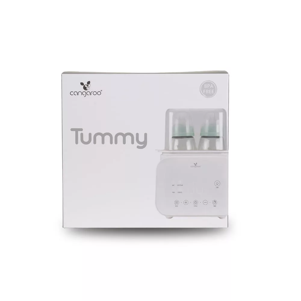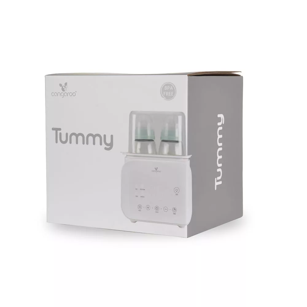 Tummy 4 az 1-ben melegítő - multifunkcionális megoldás a gondoskodó szülők számára. Egy olyan készülék, amelyet úgy terveztek, hogy megkönnyítse a babával való mindennapokat, négy alapvető funkciót egyesítve egyetlen kompakt és stílusos készülékben: 4 funkció 1-ben: - Anyatejmelegítés és tápszeres tej - Babaételek melegítése - Anyatej felolvasztása - Cumisüvegek és kiegészítők sterilizálása Legfontosabb előnyök: - Digitális vezérlőpanel érintőképernyővel a pontos és kényelmes kezeléshez. - Állítható hőmérséklet: - 35°C és 50°C között a tej felmelegítésekor - 60°C és 80°C között az ételek felmelegítésénél - Nagy kapacitás- egyszerre két cumisüveget tart meg melegítéshez vagy sterilizáláshoz - Mellékelt kosár - ideális befőttesüvegek és palackok tárolására - Körülbelül 10 perc alatt sterilizál - hatékony és gyors tisztasági ellátás - Kisebb kiegészítők, például cumi és cumik számára is alkalmas - Automatikus kikapcsolás a sterilizálás befejezése után - a nagyobb biztonság érdekében - Teljesítmény: 500W - megbízható és energiatakarékos működés