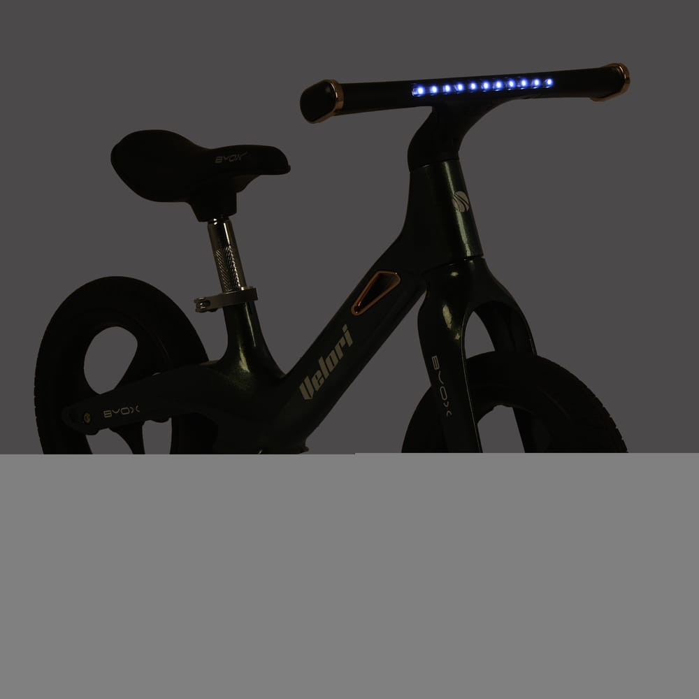 A biztonság, a kényelem és a mozgás örömének szem előtt tartásával tervezett Velori, Byox futóbicikli tökéletes választás a kis kalandorok számára. Főbb jellemzők: - Alkalmas 2 év feletti gyermekek számára - akár 50 kg-os terhelésnek is ellenáll. - Stabil, mégis könnyű, korrózióálló konstrukció - könnyű kezelhetőséget biztosít - Magnézium ötvözetből készült - Állítható puha ülés- az ülésmagasság állítható a reteszelő mechanizmuson keresztül - Zenélőpanel és kormányfények - minden utazást szórakoztató élménnyé tesznek - Pumpás gumiabroncsok- elnyelik a rezgéseket, elnyelik az ütéseket és sima, kényelmes utazást biztosítanak minden felületen A Velorival minden utazás egy olyan élmény, amely önbizalmat és a mozgás szeretetét fejleszti.