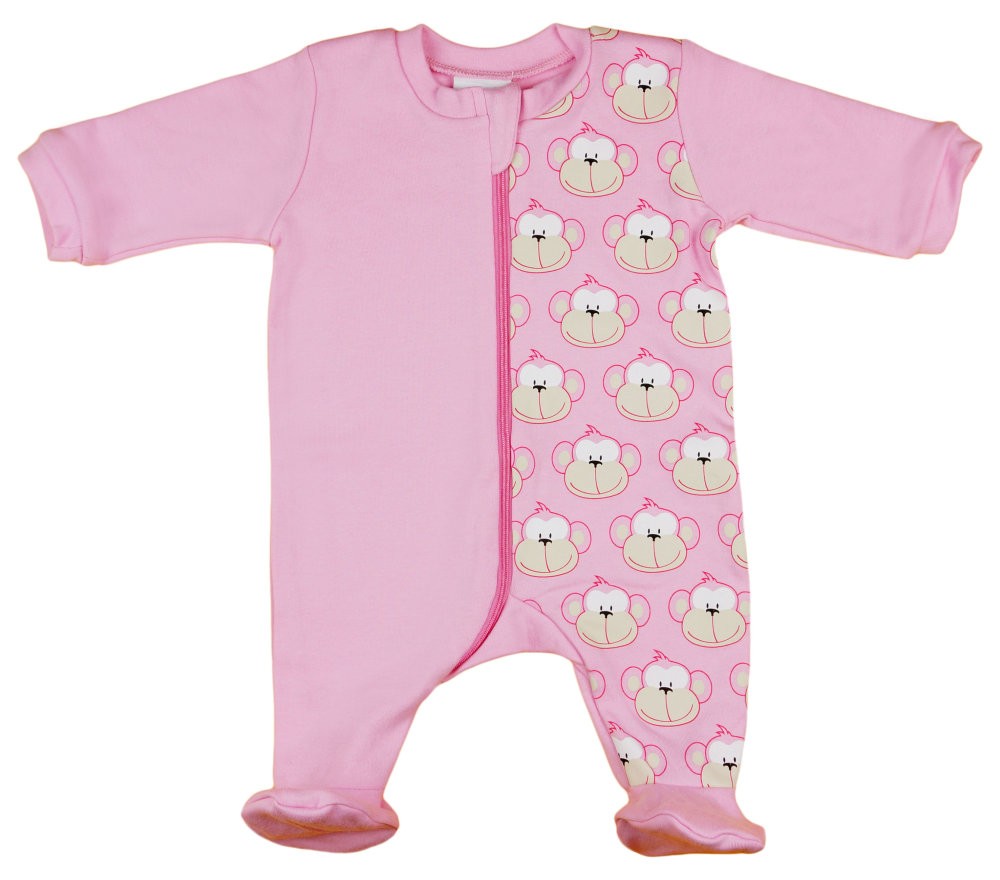 Vidám Monkey majom mintás, elöl cipzáras, hosszú ujjú baba rugdalózó