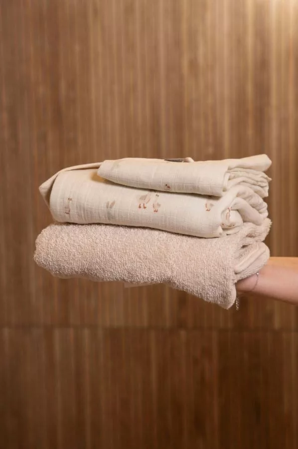 • Alkalmas fürdéshez, pelenkázáshoz, etetéshez és pólyaként is használható.