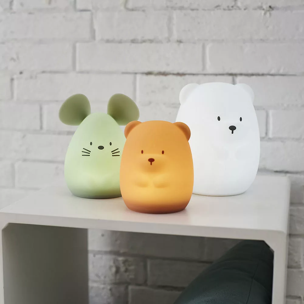 - aranyos éjszakai lámpa játékos dizájnnal. BPA-mentes szilikonból készült, matt és kellemes textúrájú