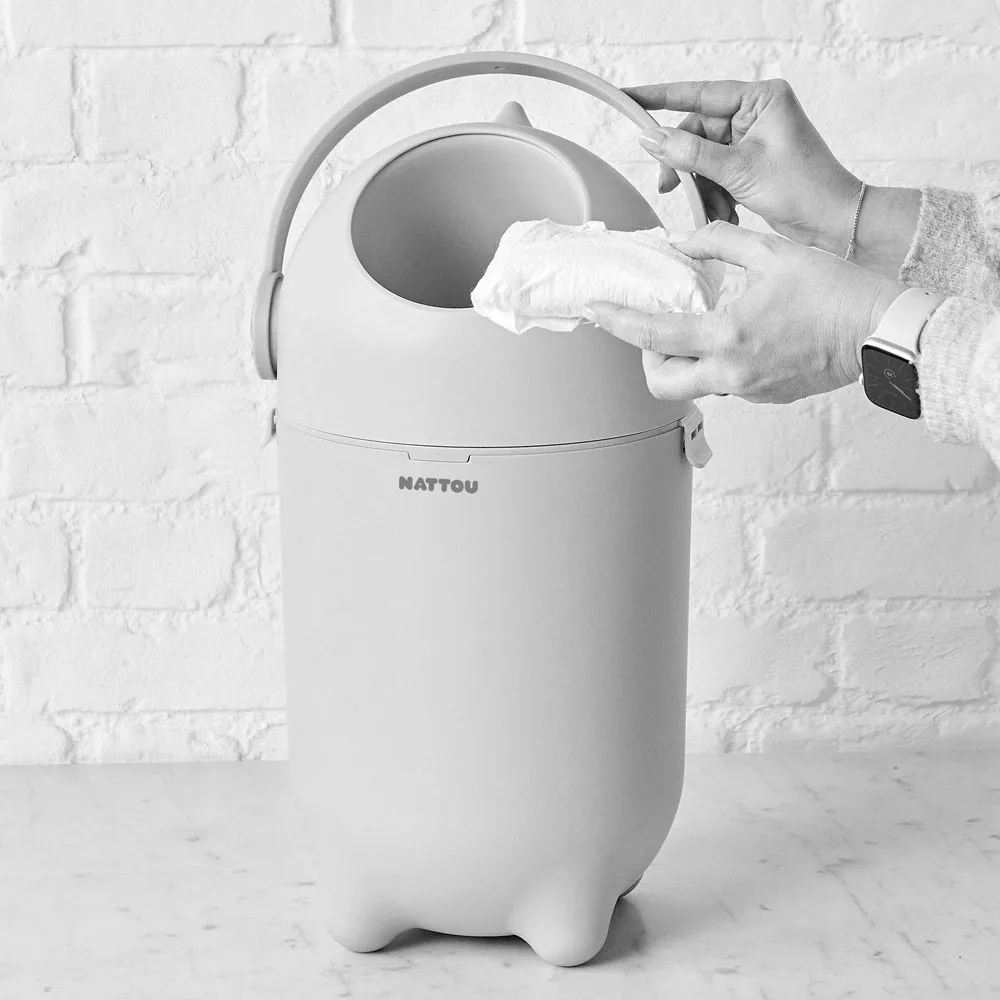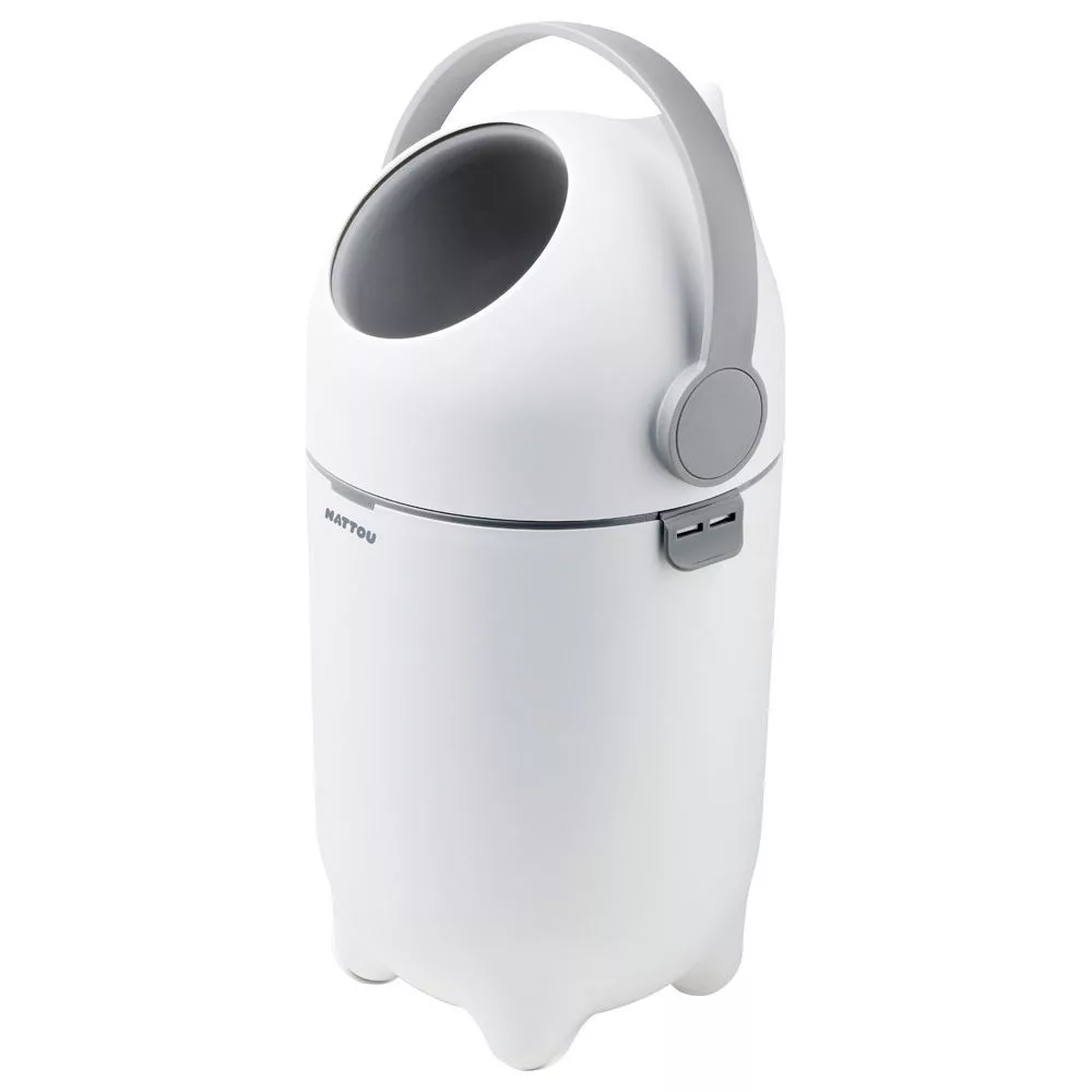 Könnyen kezelhetõ, akár egy kézzel is. A fogantyú felemelésével a pelenkát kidobjuk a kukába, majd leengedjük a fogantyút, hogy a pelenka a zacskóba essen.
