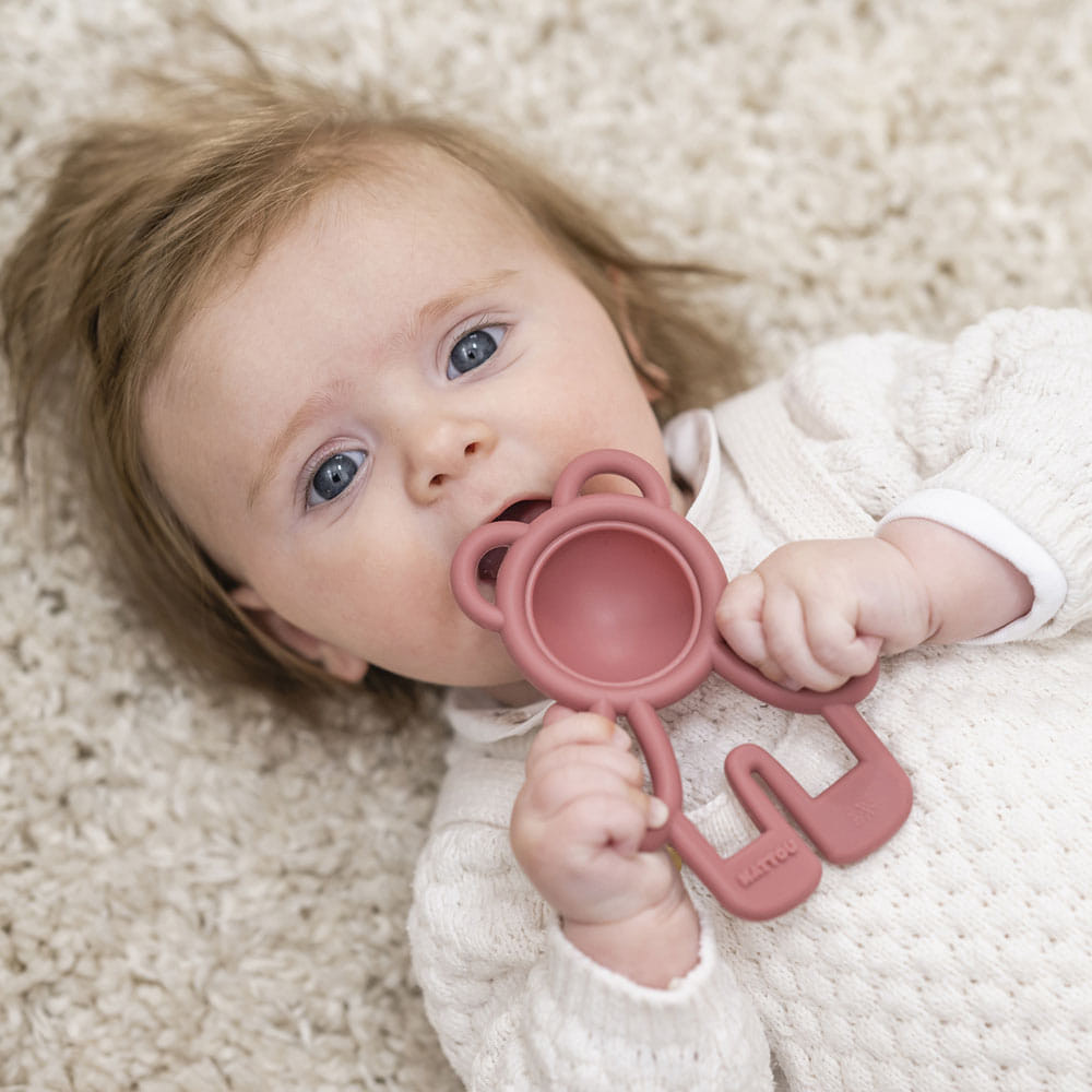 A puha BPA-mentes szilikonból készült Pop-it rágóka órákon át szórakoztatja babáját. Ez a kis kezekre méretezett oktatójáték arra ösztönzi a babát, hogy megnyomja a buborékot, és fejleszti a finommotorikát. A buborék hangja és a különbözõ textúrájú felület a forma tapintására, megnyomására hív. Ezenkívül a Pop-it megkönnyebbülést nyújt, amikor kijönnek a baba elsõ fogai.