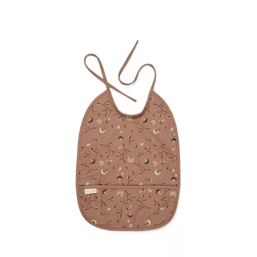 Aranyos és praktikus előke, amelynek elülső zsebe  felfogja a folyadékot és a lepotyogó ételt is. .Az újrahasznosított poliészter megkönnyíti az előke nedves ruhával történő tisztítását.