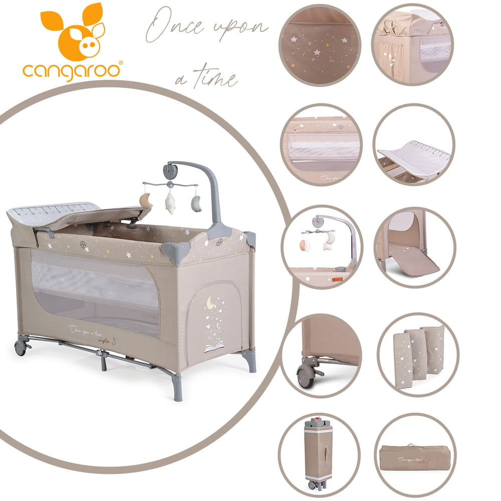 Moni Cangaroo once upon3 2 szintes utazóágy zenélő játékkal, pelenkázós bézs
