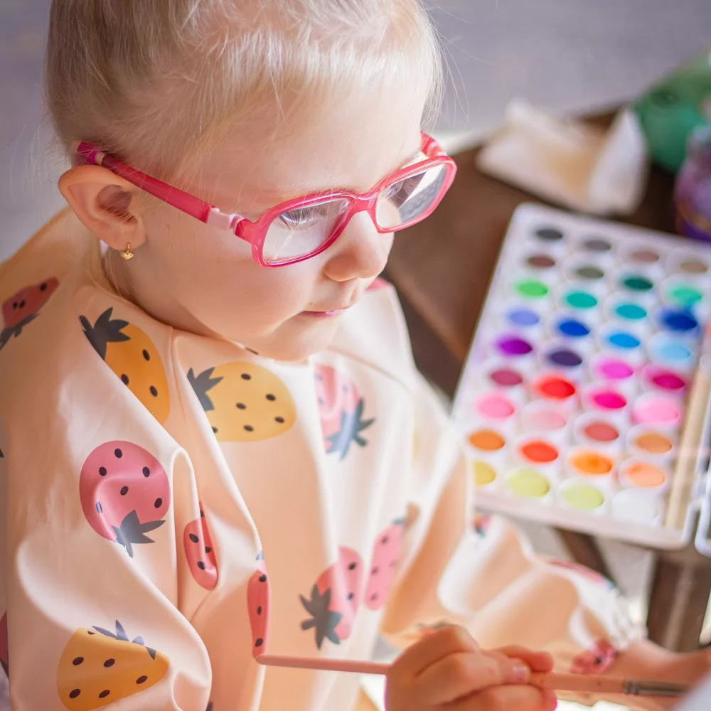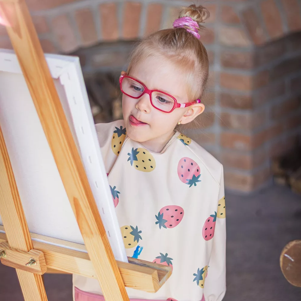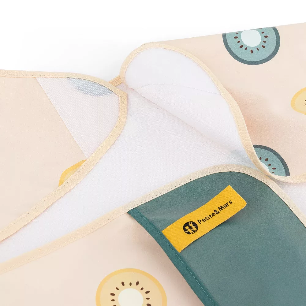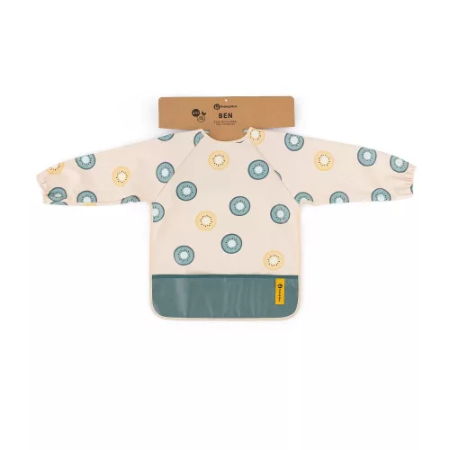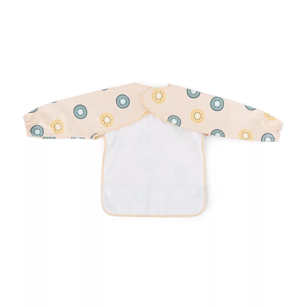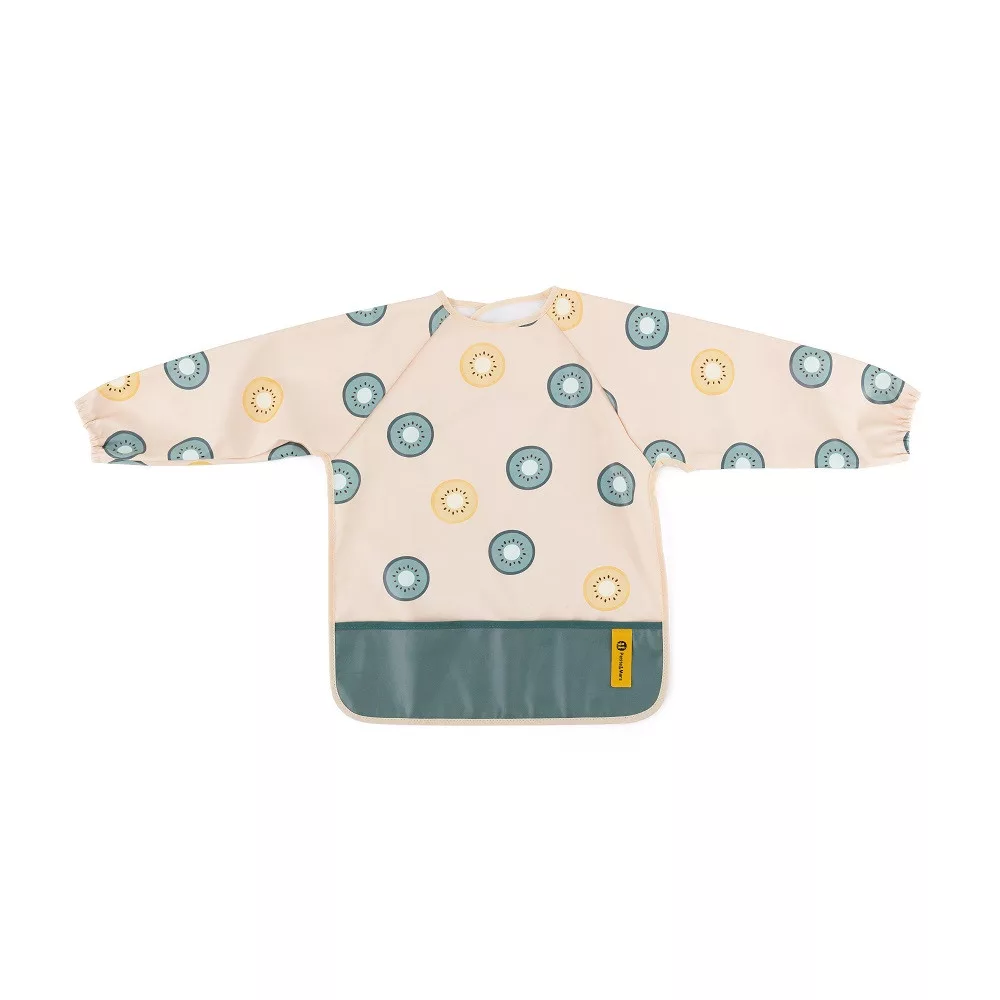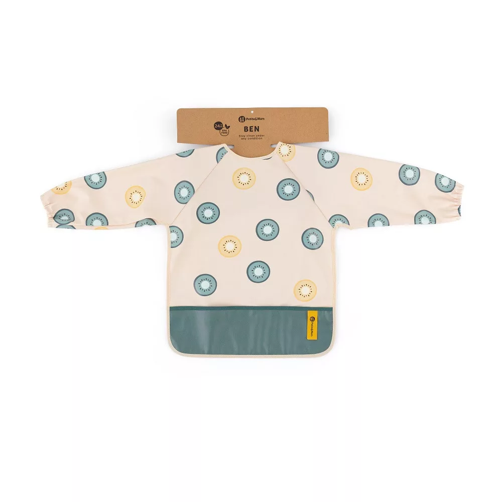 A kényelmes, vízálló, hosszú ujjú előke gyorsan száradó, biztonságos PU anyagból készült, amely teljesen PVC- és ftalátmentes. Az elülső morzsazseb biztosítja a rendet és a kényelmet etetés közben, a hosszú ujjú, elasztikus pánttal ellátott ujjak pedig megvédik a ruhát a szennyeződéstől és a nedvességtől. Az előke nagyon puha tapintású, és puha tépőzárral rögzíthető. Nemcsak evéskor, hanem művészi alkotások készítésekor is használható. A tisztán tartásához használat után egyszerűen törölje le nedves ruhával.