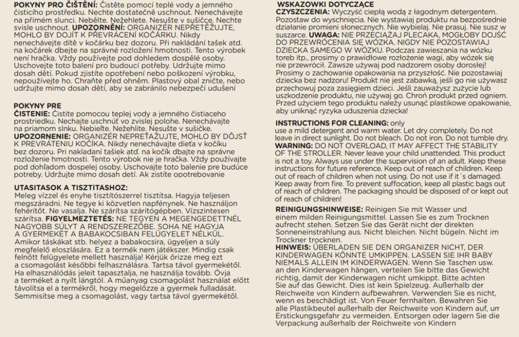 Ez a könnyű és jól átgondolt táska kiváló minőségű nedvességálló anyagokból készült. A vállpánton csatokkal rendelkezik, így a babakocsihoz rögzíthető, fő rekesze pedig cipzárral záródik. A belső zsebek, köztük praktikus zsebek megkönnyítik a csomagolást egy kiránduláshoz vagy sétához.