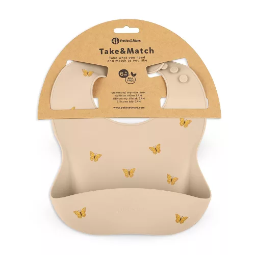 PETITE&MARS Szilikon előke Take&Match Sand Butterflies 6m+