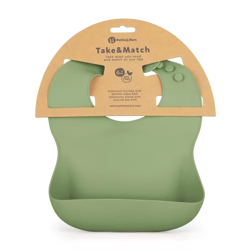TAKE&MATCH szilikon előke A SAM szilikon előke zsebes kialakítással elengedhetetlen segítő az első hozzátáplálások során. Kényelmet és biztonságot nyújt az etetés során, miközben segít tisztán tartani az étkezés közben. Ez egy olyan megoldás, amely megkönnyíti a szülők életét, és kényelmet biztosít a legkisebbek etetésekor.