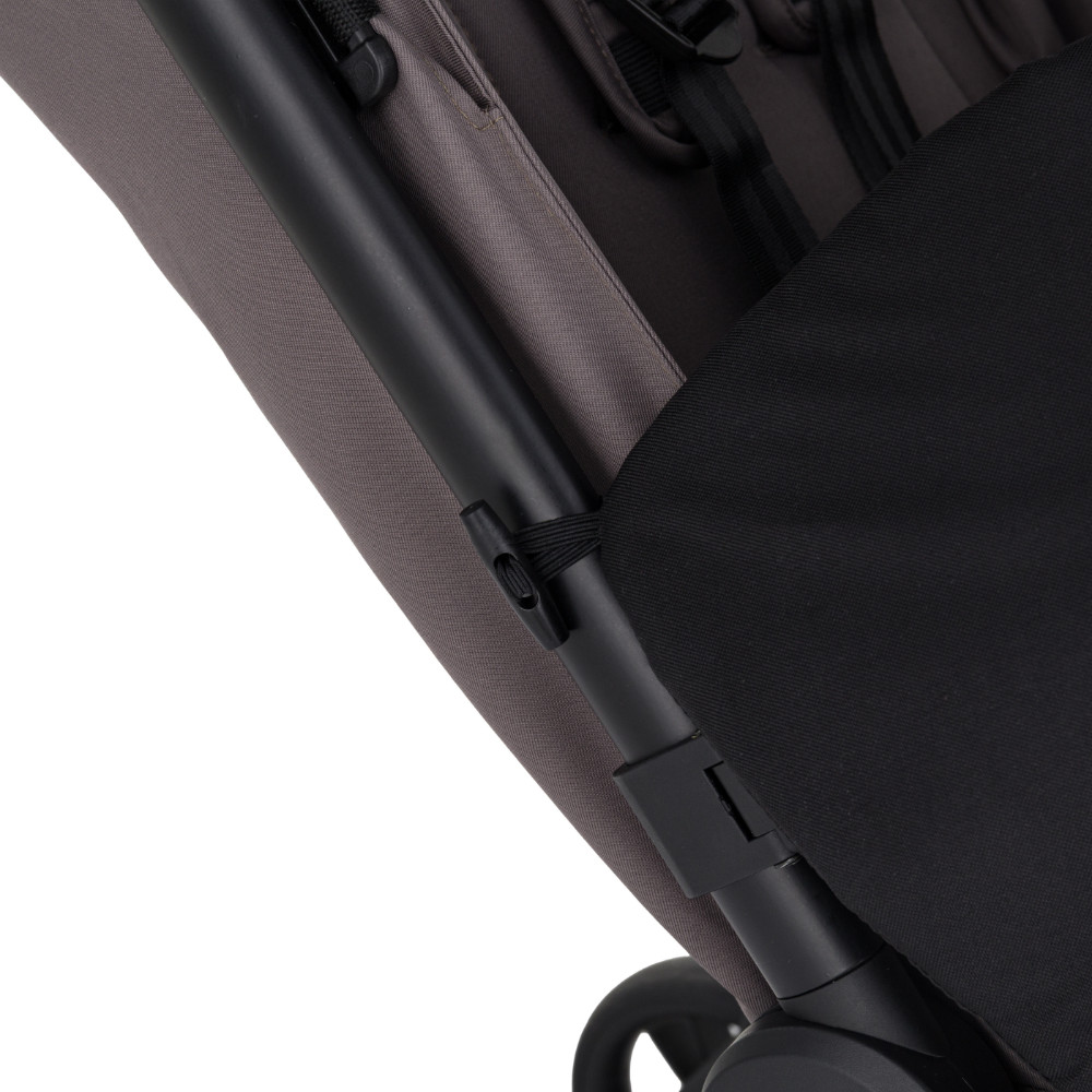 A két praktikus cipzár megkönnyíti a használatot – gyors szellőztetést vagy a gyermek kényelmes kivételét teszi lehetővé anélkül, hogy a lábzsákot teljesen le kellene cipzározni. A rögzítés rugalmas pántokkal és záródással történik, amelyek stabil és biztonságos rögzítést biztosítanak a babakocsi vázához.