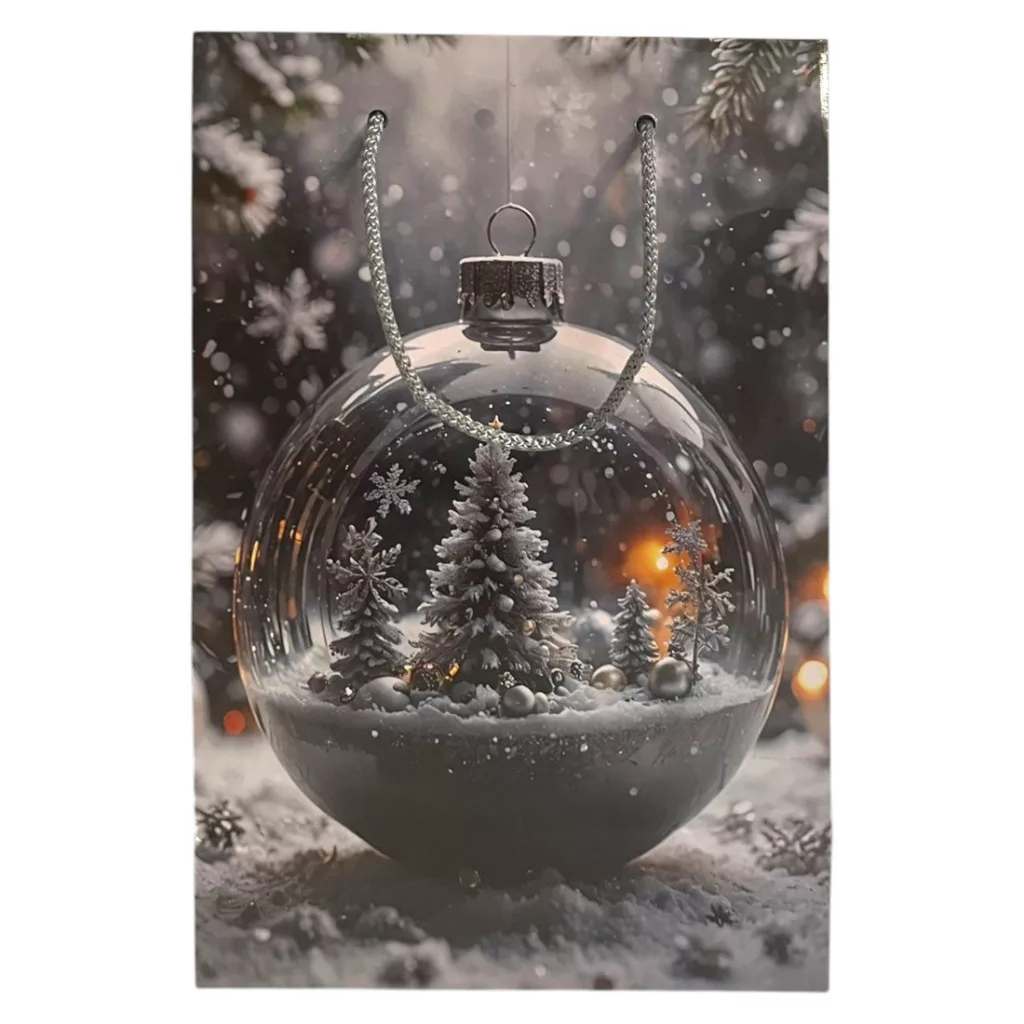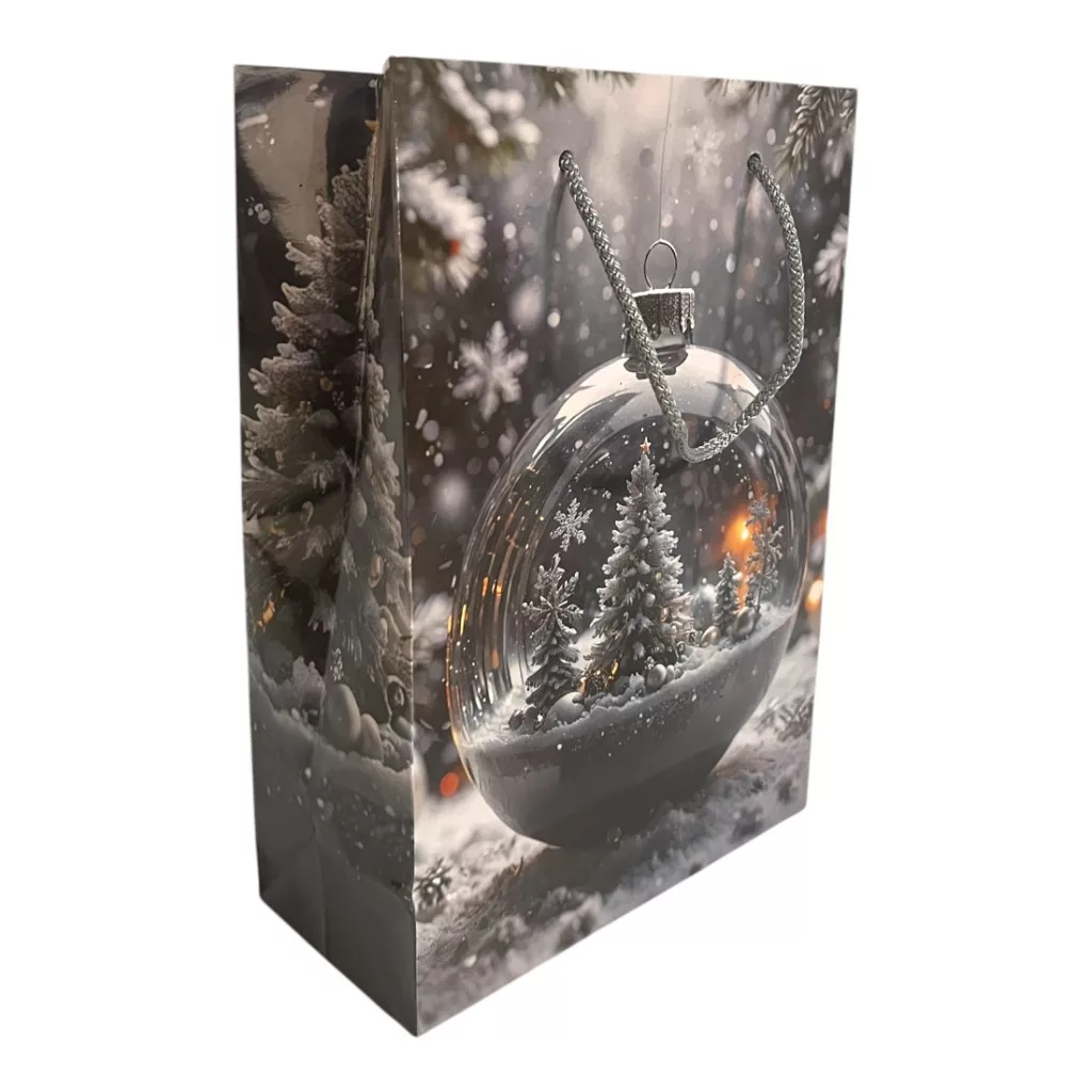 Papírtasak, gömb dísz karácsonyfával, XM, 16x23 cm