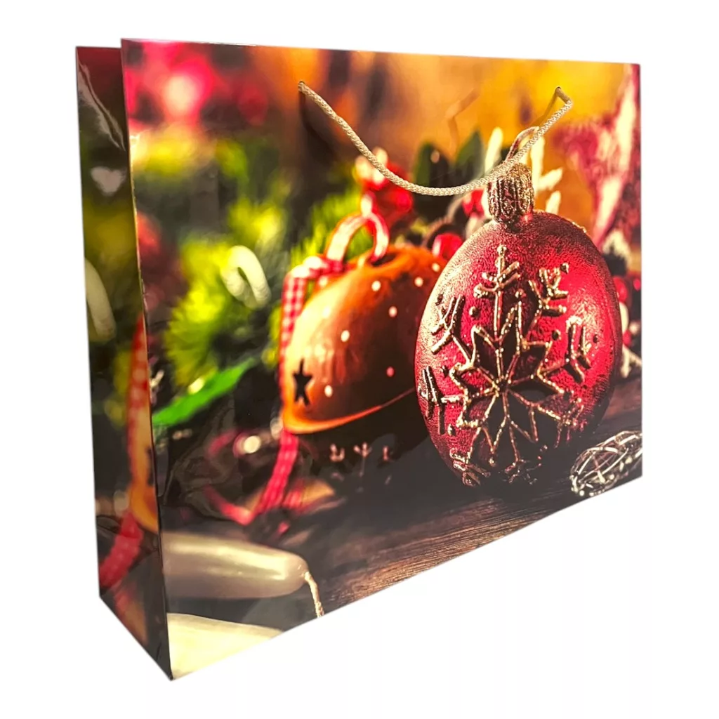 Papírtasak, piros, arany, XM, 37x29 cm