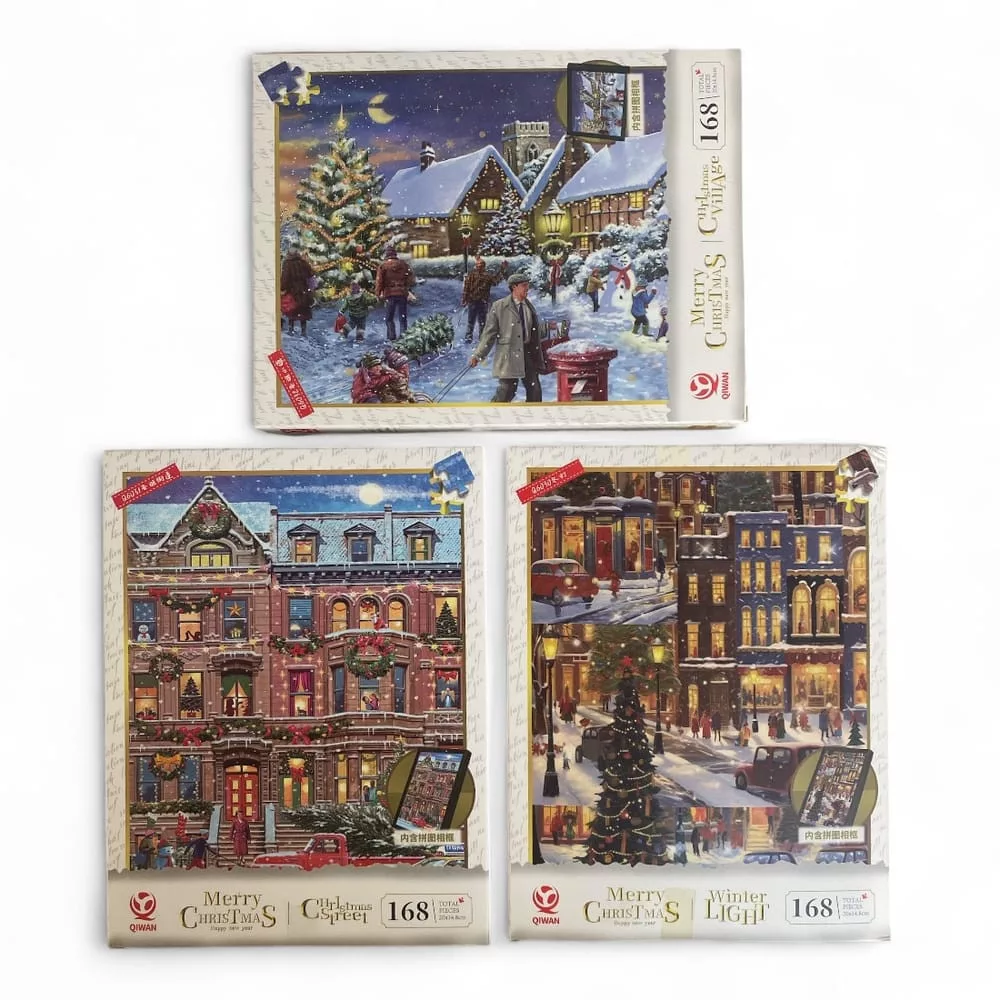 Puzzle, XM, karácsonyi, 168 db, 3 féle, 18x24 cm dob.