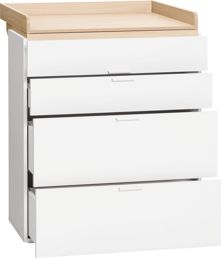 A különböző mélységű tágas fiókokban nagyobb és kisebb tárgyak is elférnek, melyek eleinte a babaápoláshoz kellenek, később a nagyobb gyermek dolgai tárolhatóak benne.