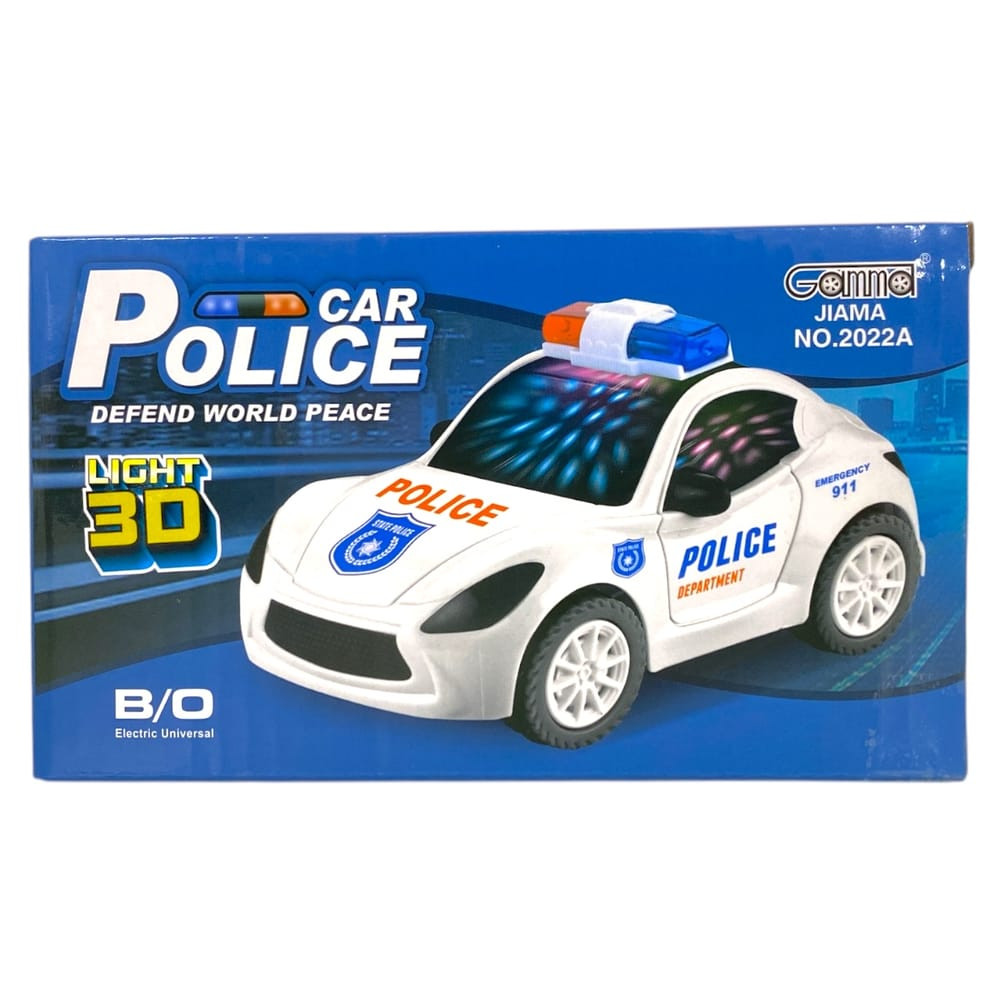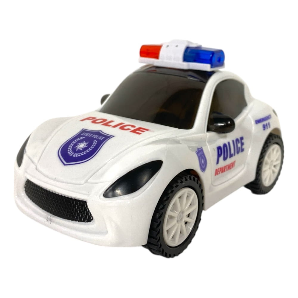 Rendőrautó, el., bolygókerekes, hang-utastér vil., 15x9 cm dob.