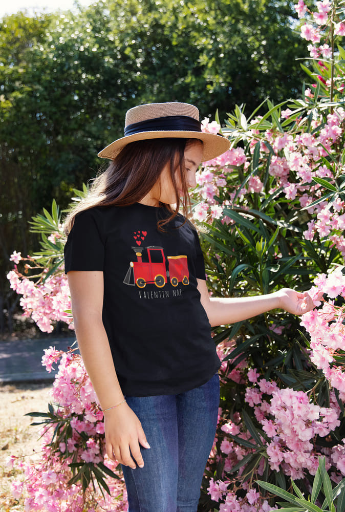 Egy igazán aranyos választás Valentin napra. Képzelj el kisgyermekét ebben a fekete, rövid ujjú pólóba, melyen a "Valentin nap" felirat olvasható. Kiváló minőségű, magyar termék, amelyben garantáltan jól érzi magát gyermeke. Az anyaga 100% pamut, így kényelmes és bőrbarát viselet. Egy igazán különleges és szívhez szóló ajándék lehet Valentin napon.