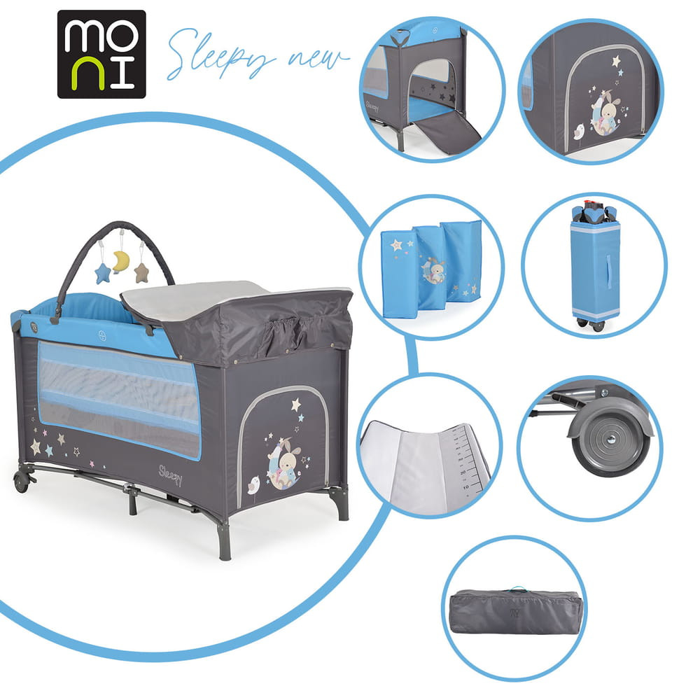 Moni Moni sleepy összecsukható luxus utazóágy 2 szint+pelenkázó+ játék kék