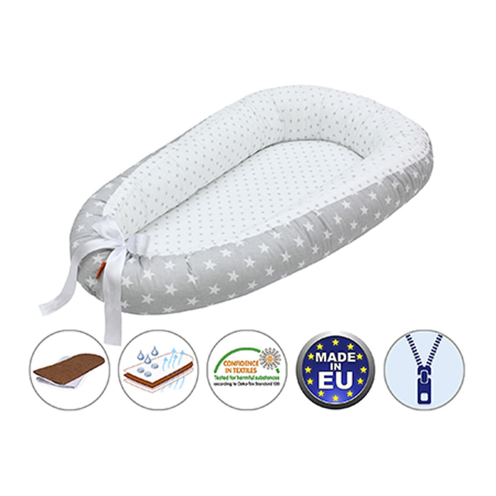 - Kiságyban betétként. Az újszülött gyerekeknek nagy és tágas a kiságy, ezért sokkal biztonságosabban érzik magukat a babafészekben, mivel körbeöleli õket.