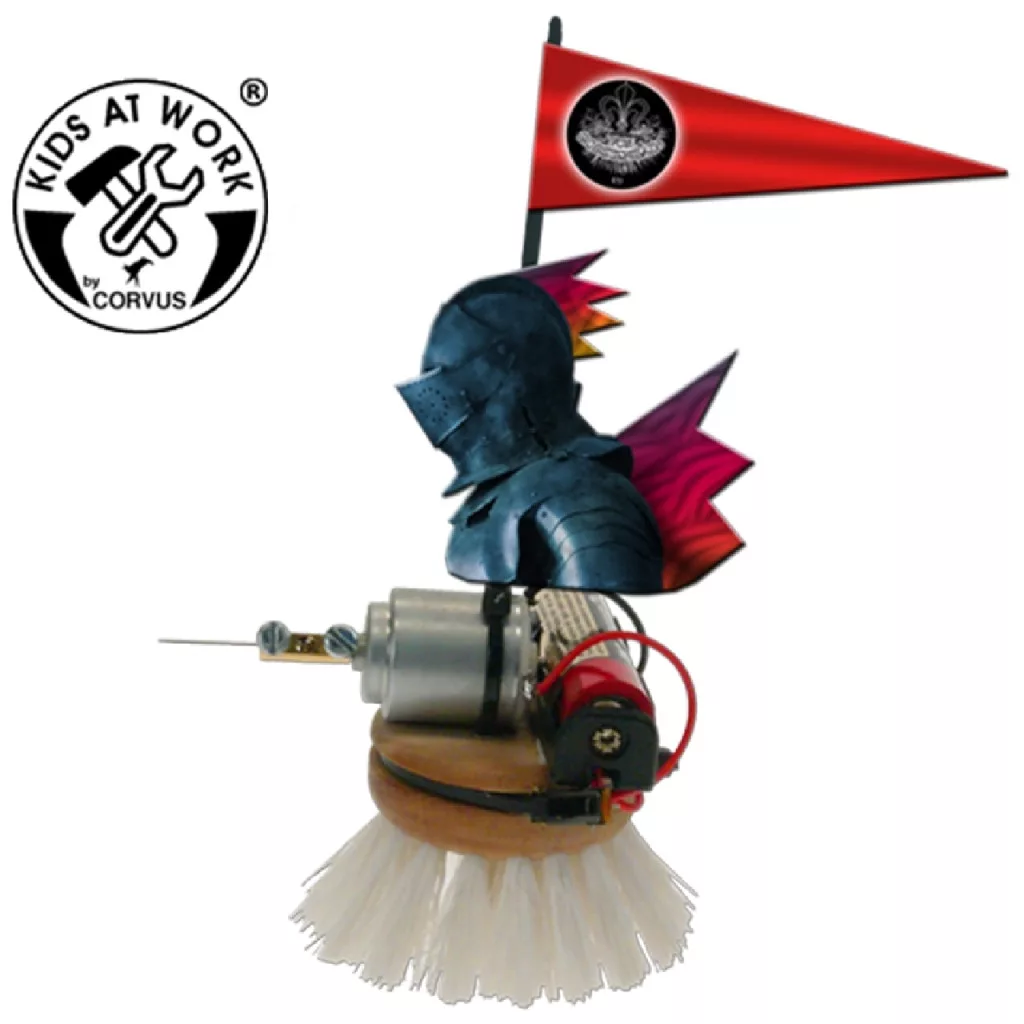 Egy elektromos motorral szerelt kefe, amelynek egy lovag ad személyiséget.