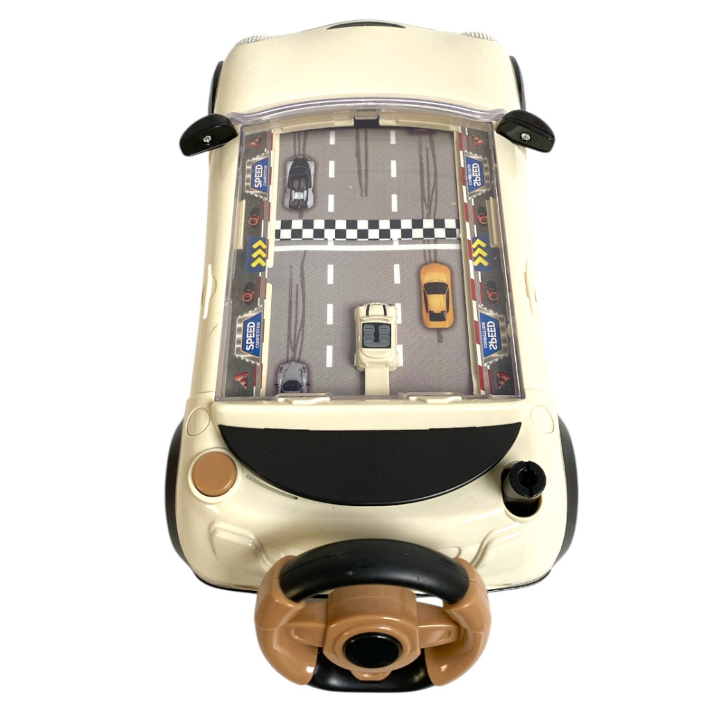 Szimulátor, el., autó forma, autóversenyző, autópálya, 33x19 cm dob.