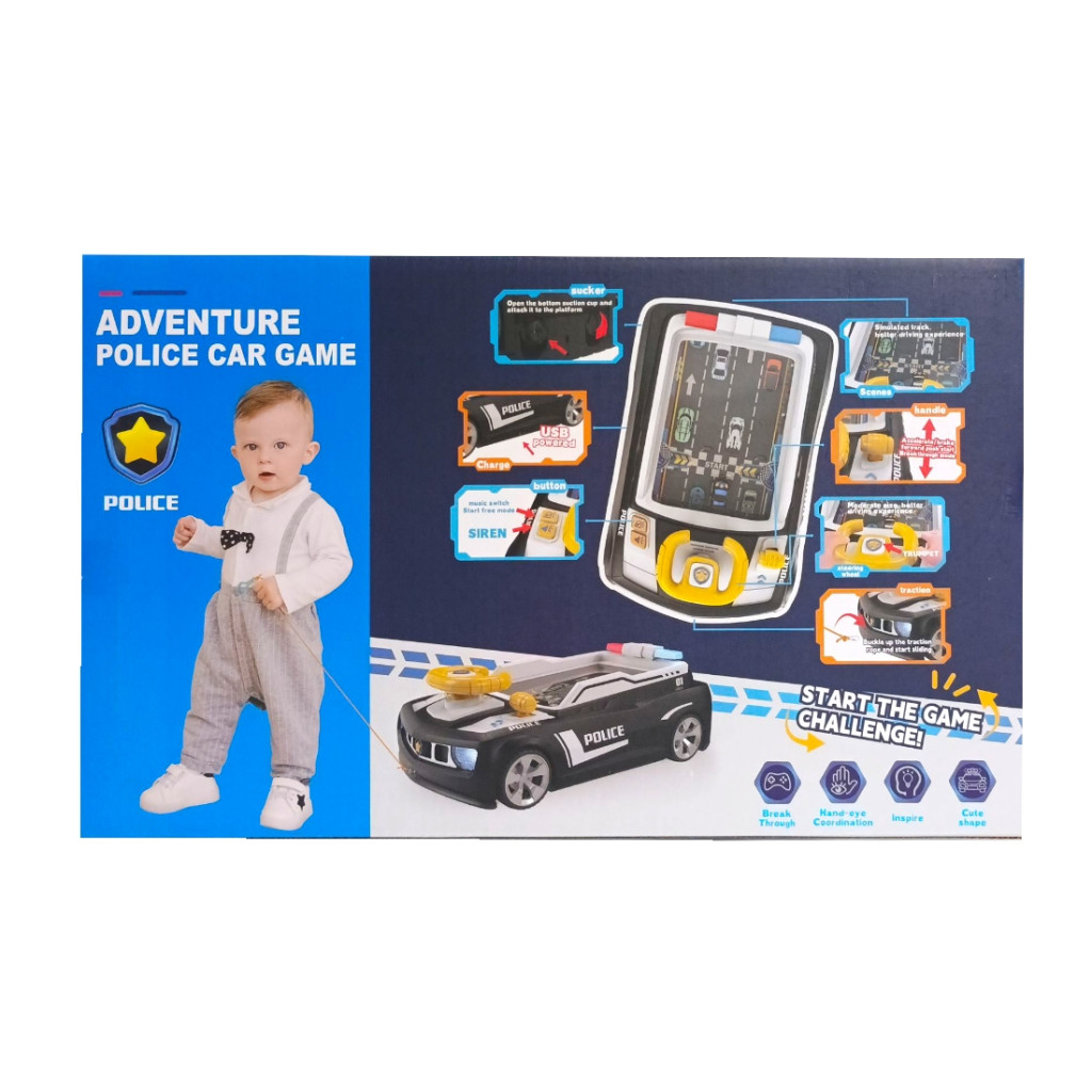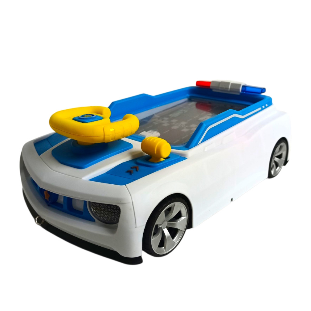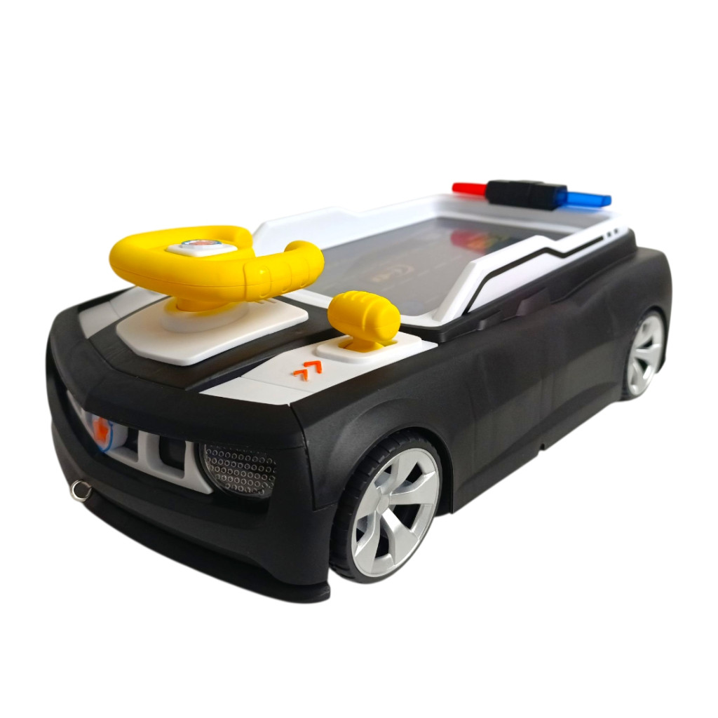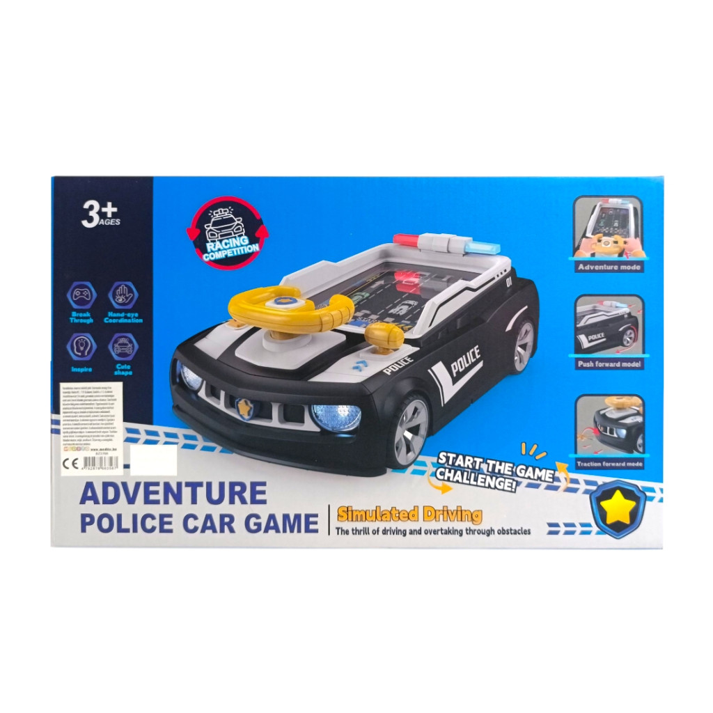 Szimulátor, el., rendőrautó forma, autóversenyző, autópálya, 2 szín, 40x14 cm dob.