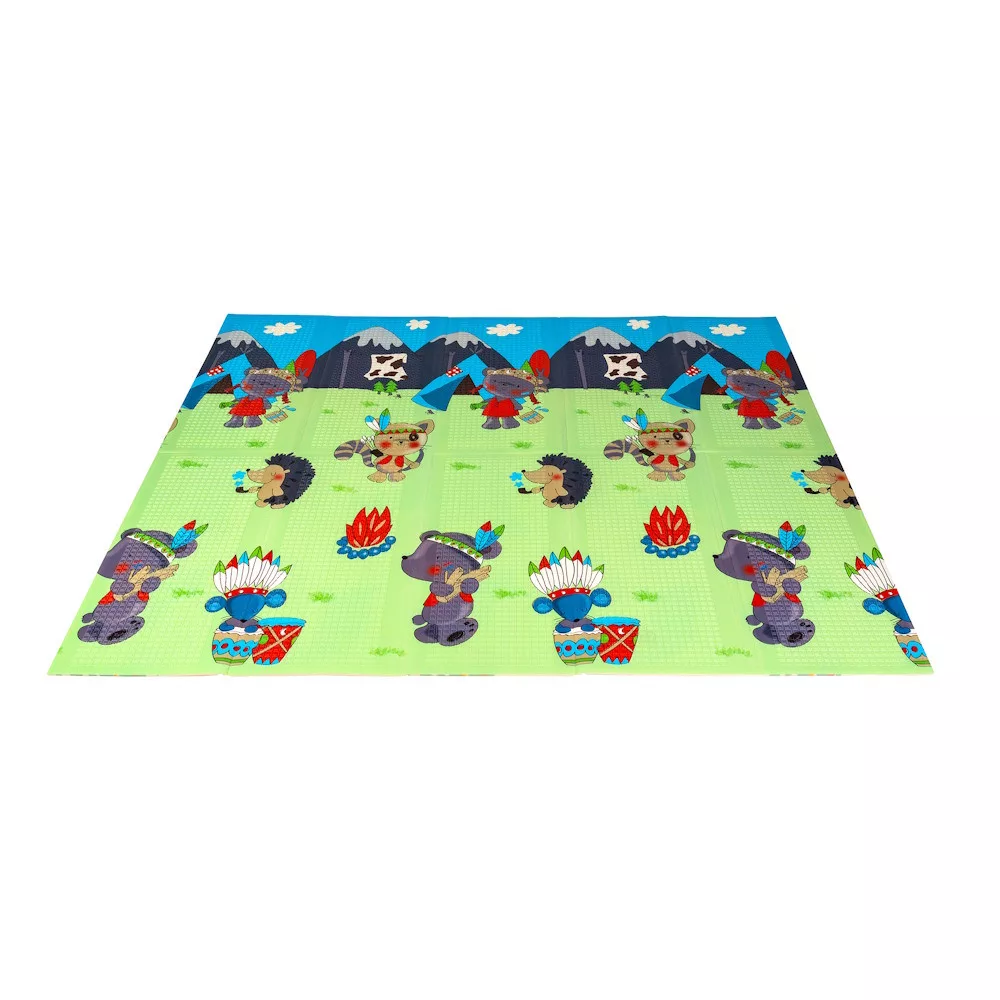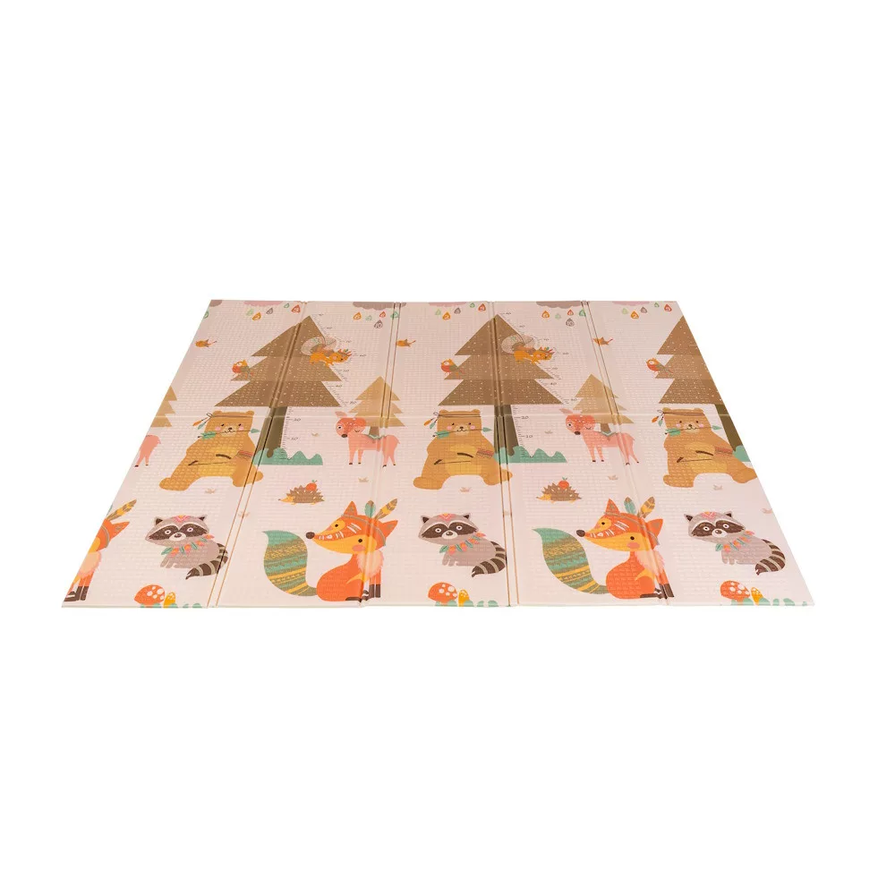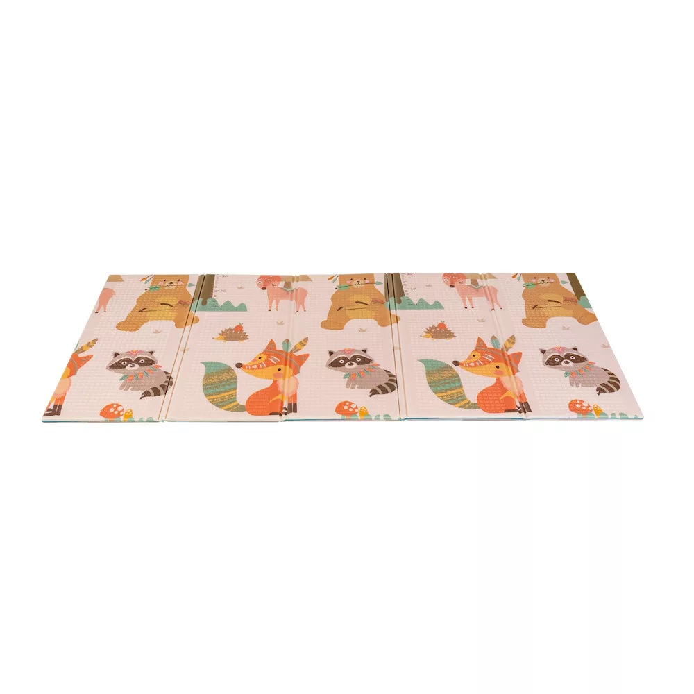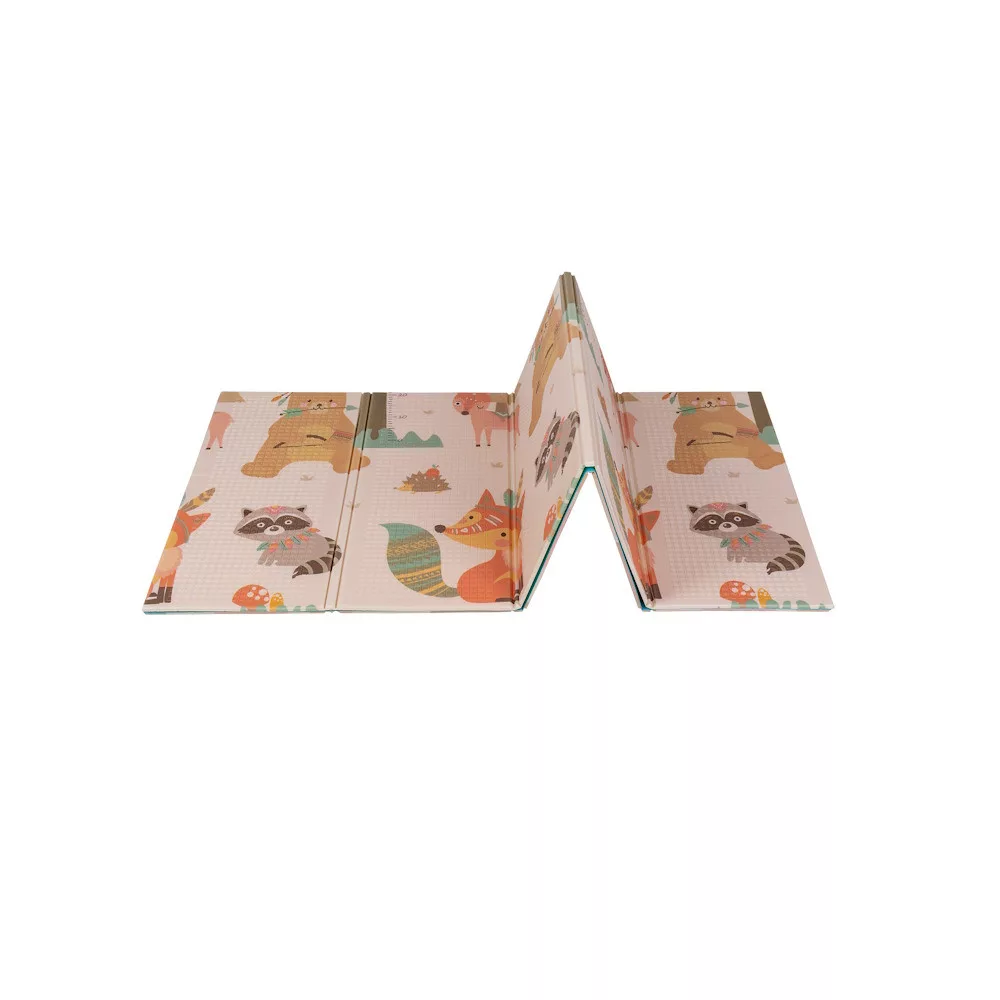 A kétoldalú összehajtható szõnyeg színes és változatos mintákat és textúrákat kínál, amelyek segítik fejleszteni a babák látását és tapintását. Tele van állatok képeivel, amelyek támogatják a legfiatalabb felhasználók intellektuális és motoros fejlõdését.