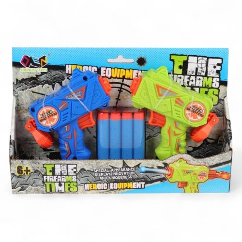 Szivacs lövedék kilövő pisztoly klt., 2 pisztoly, 24x15 cm dob.